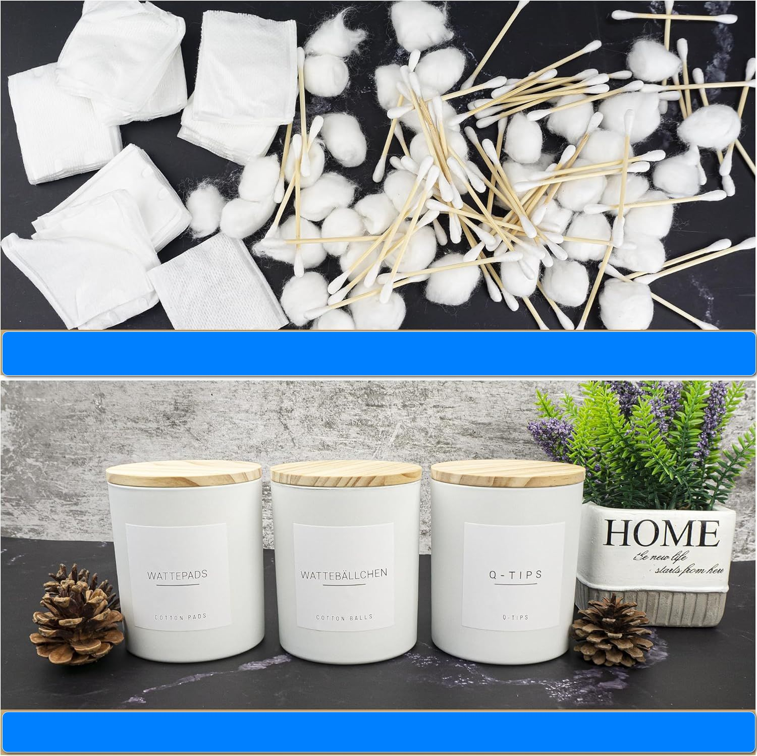 Setul nostru de baie din bumbac este necesar pentru bambus, accesorii pentru baie din lemn și accesorii pentru baie de țară; Fiecare boi de apotecar are o deschidere largă, ușor de îndepărtat cu o mână și acces rapid la tampoane de bumbac și bile de bumbac.