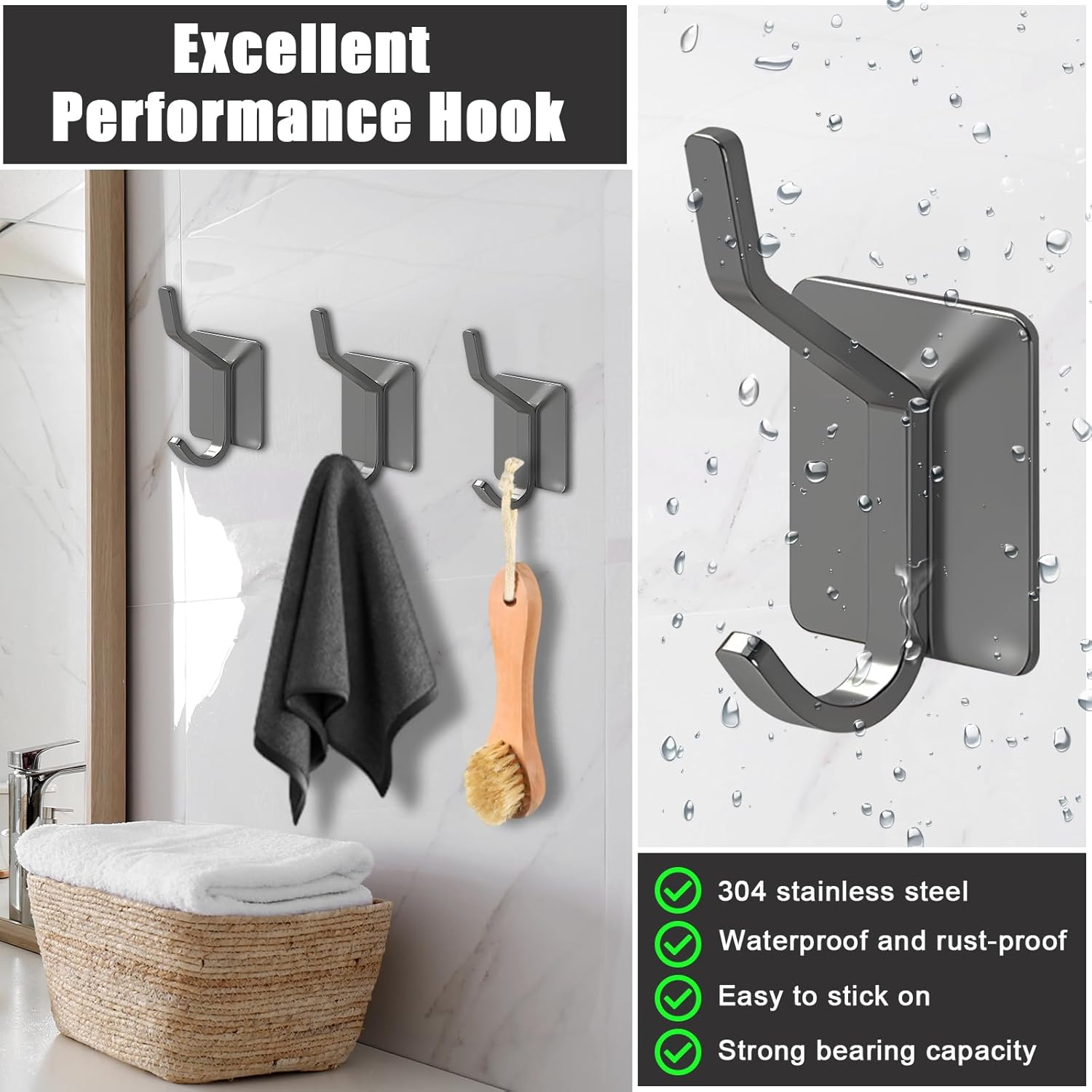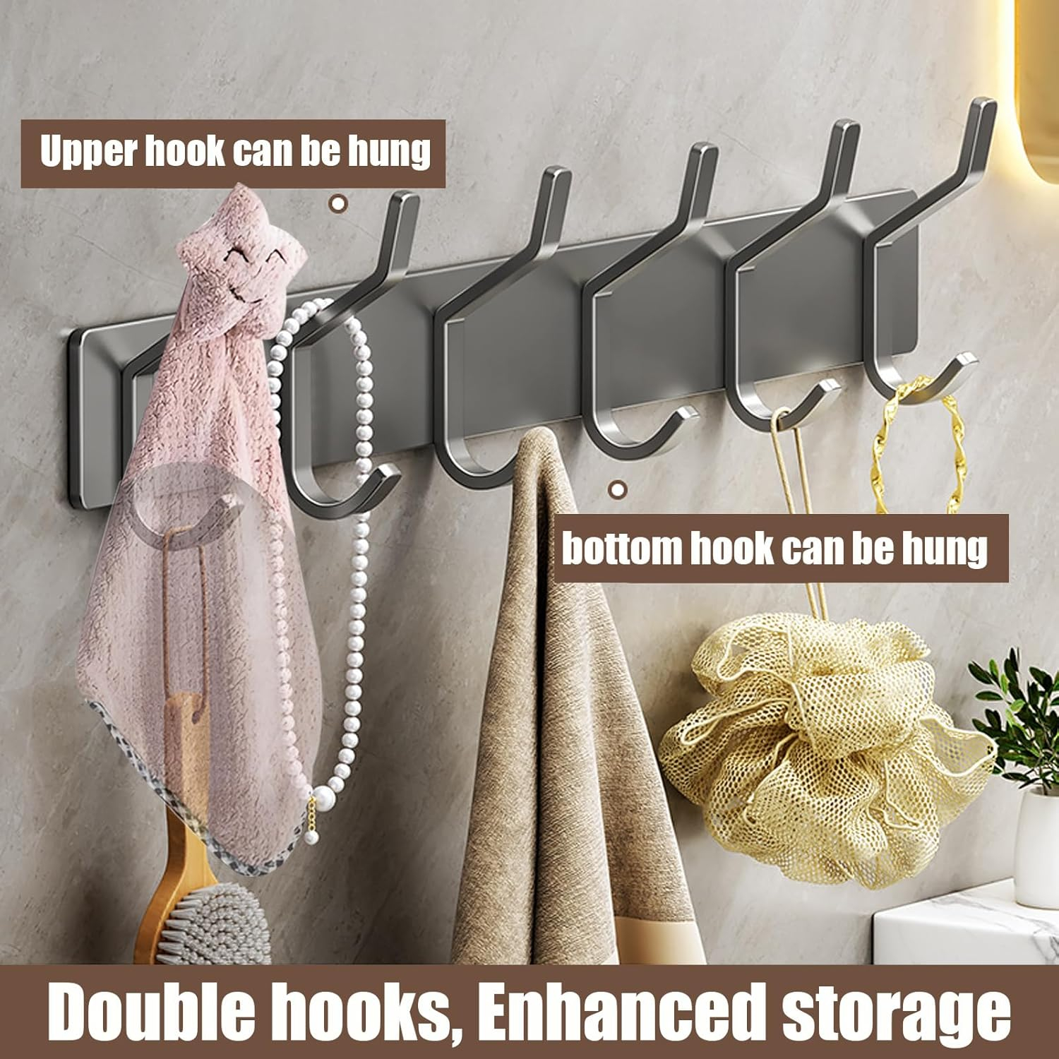 Capacitate dublă de stocare, capacitate de încărcare puternică, banda adezivă oferă o capacitate maximă de încărcare de până la 5 kg. Puteți să vă agățați cu ușurință prosopul, halatul de baie, pălăria, pungile, pălăriile, chei, umbrelele etc. Vă rugăm să nu atârnați obiecte supraponderale, scumpe sau fragile.
