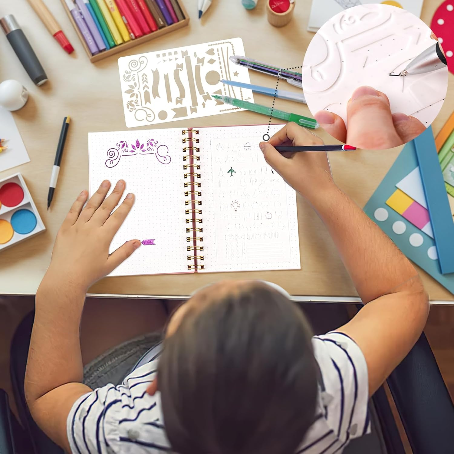 • Utilizabil - Pachetul conține două șabloane de desen din jurnal DIY. Este ușor să convertiți paginile jurnalului în aranjamente frumoase și funcționale pentru listele de bricolaj.