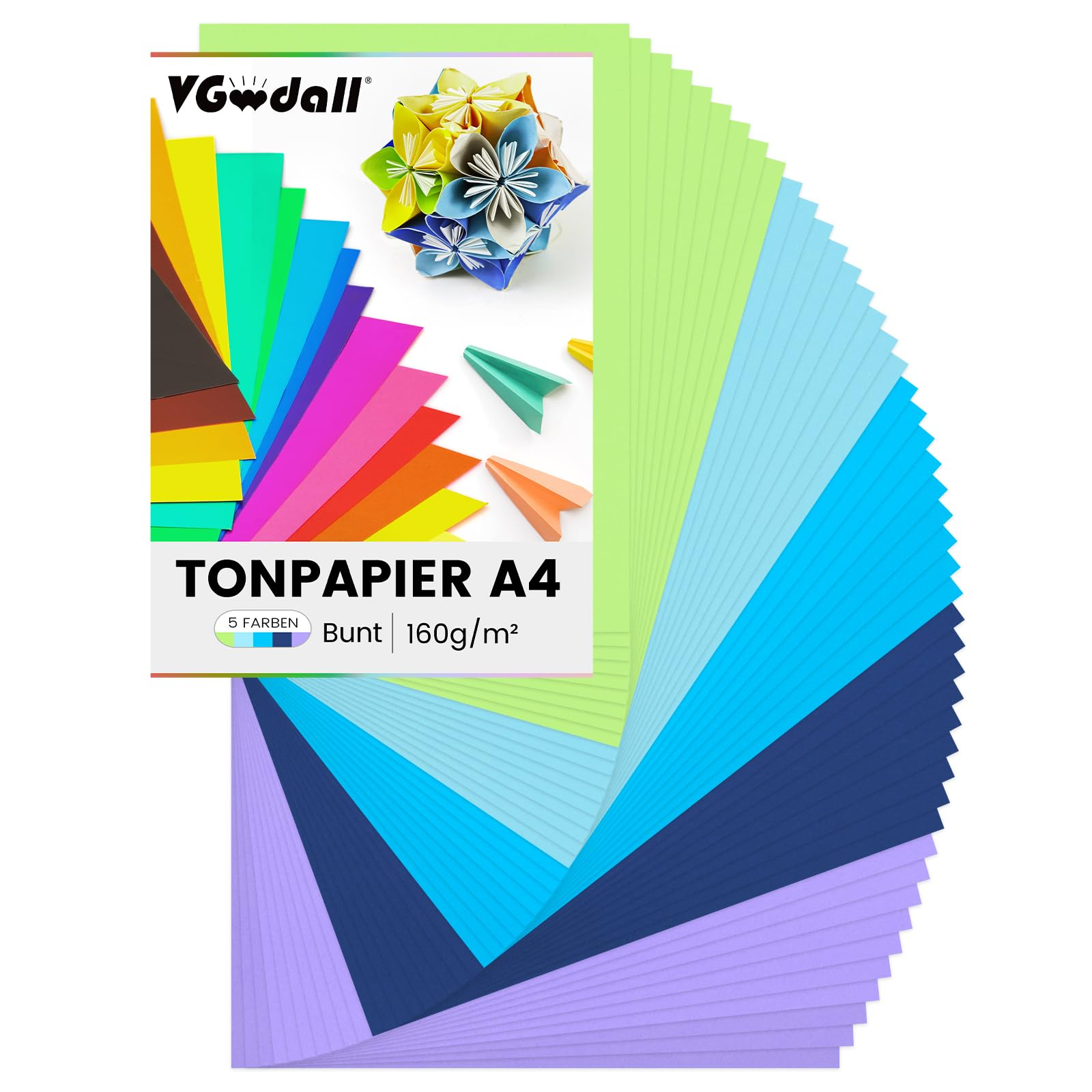 • Fiecare ambalaj conține 50 de coli de hârtie premium (29,7 x 21 cm) în diferite culori, realizate din pastă de lemn premium. Culorile sunt uniforme și își păstrează vioiciunea fără să se estompeze.
