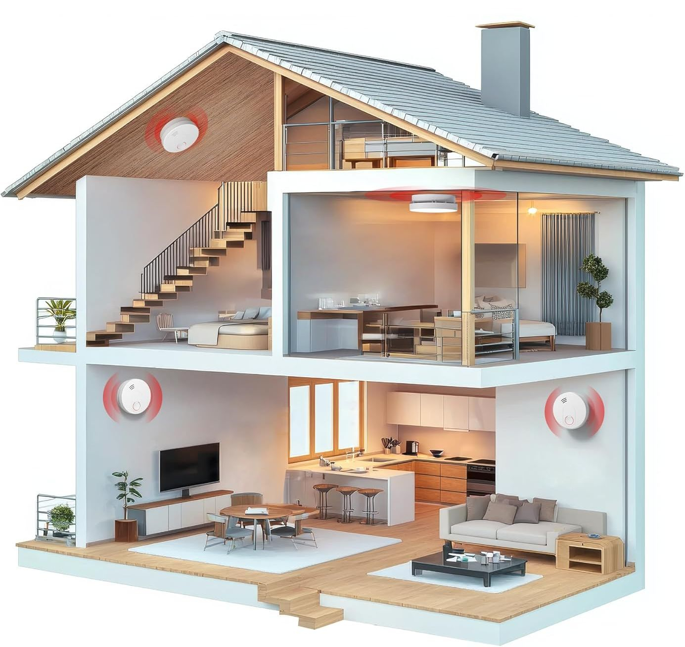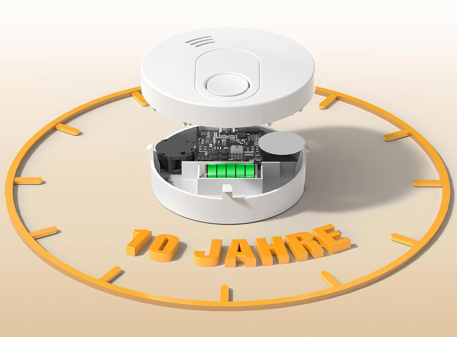 Durata de viață a bateriei pe termen lung: echipată cu o baterie de litiu CR123A încorporată de 10 ani (nefisurată), mai multă energie, consum redus și ecologic. Detectorul nostru de fum vă avertizează în timp când bateria devine scăzută pentru a asigura o protecție continuă.
