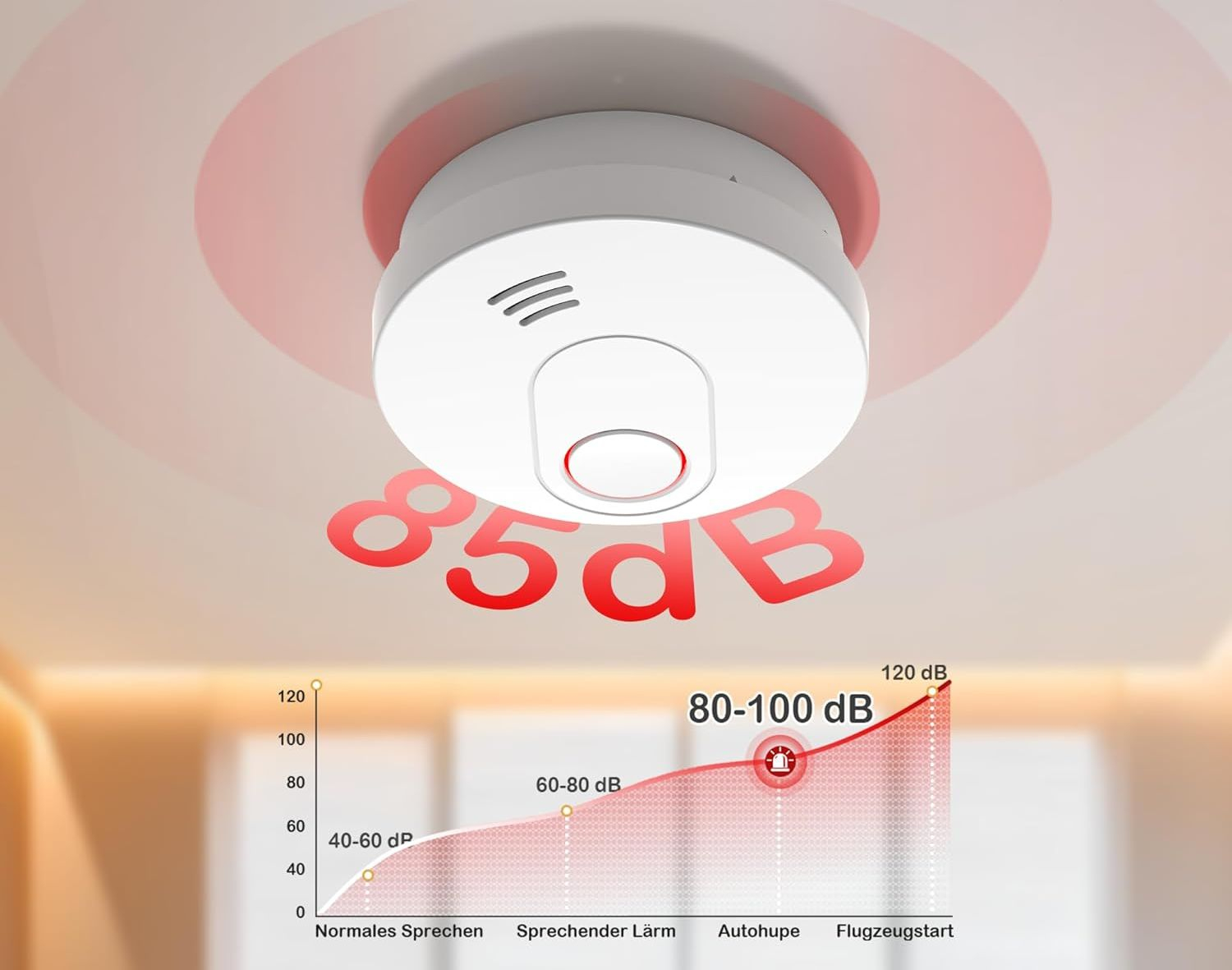 Un bip puternic și clar: când izbucnește un incendiu, un bip puternic va suna 85 dB. Butonul test/silent vă permite să vă dezactivați detectoarele în cazul unei alarme false. Testați funcționarea sa în mod regulat prin apăsarea butonului de testare.