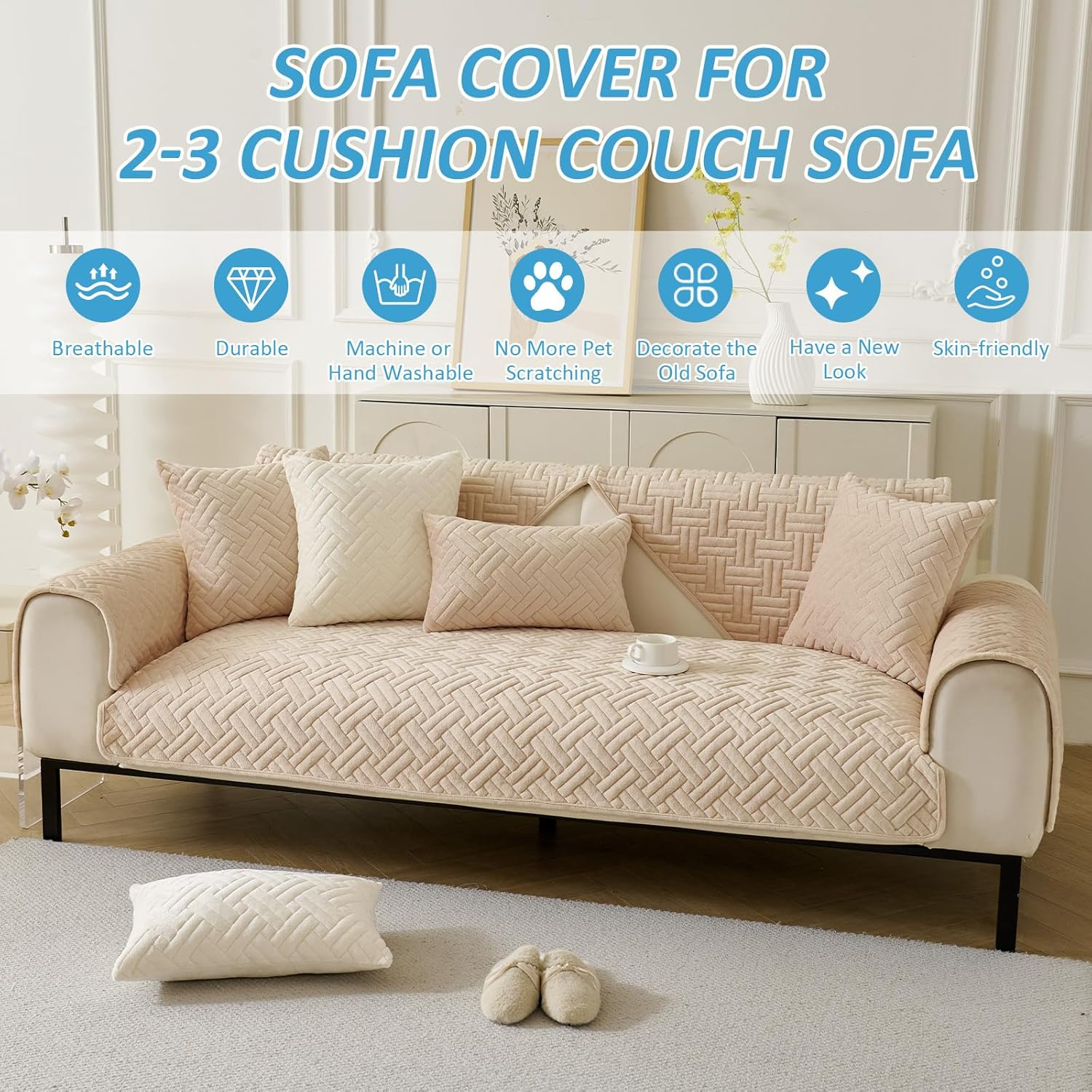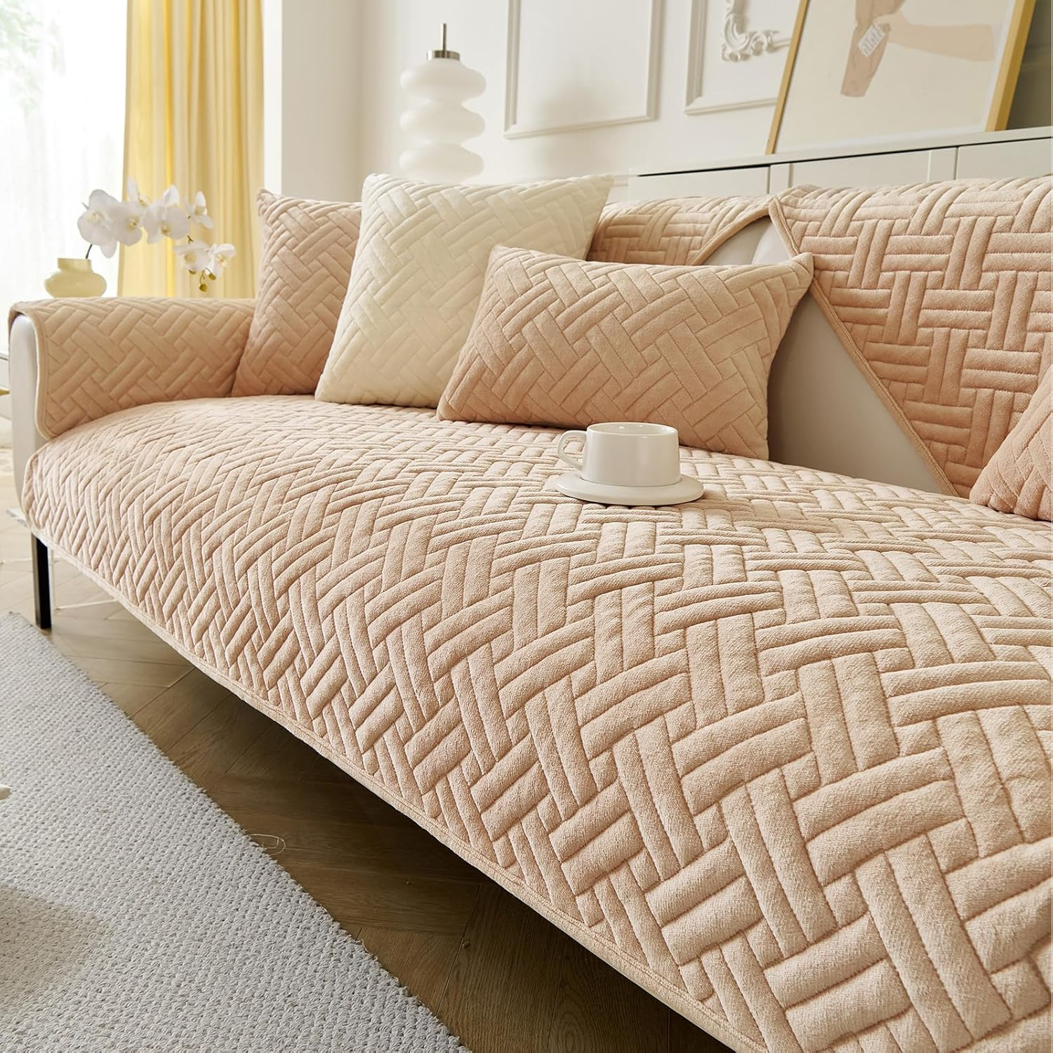 Husa universala crem anti-alunecare, protector de canapea cu textura groasa 70x90 cm