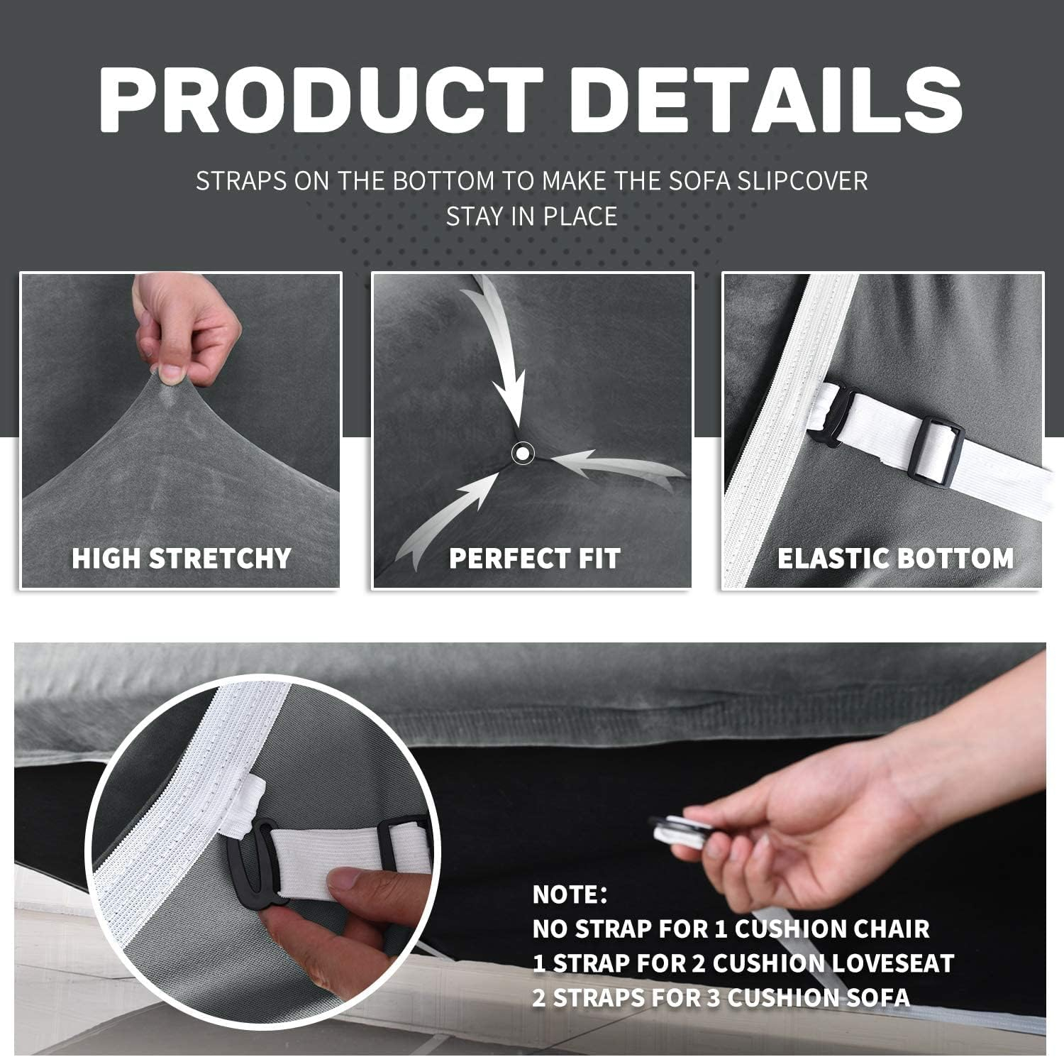 ŢESĂTURĂ SUPERIOARĂ. Fabricat din 85% din poliester și 15% pătate de lux de înaltă calitate, care este extrem de întins, moale, groasă, durabilă și confortabilă. Capacul nostru universal de canapea este suficient de flexibil pentru a fi potrivit pentru majoritatea tipurilor de canapele, foarte recomandat pentru canapeaua cu perne T, peluzile de cutie sau canapeaua înaltă din spate, țesătură sau canapelă din piele. Materialul elastic de catifea face ca husele de canapea premium să arate atractive și elegante în camera dvs. de zi