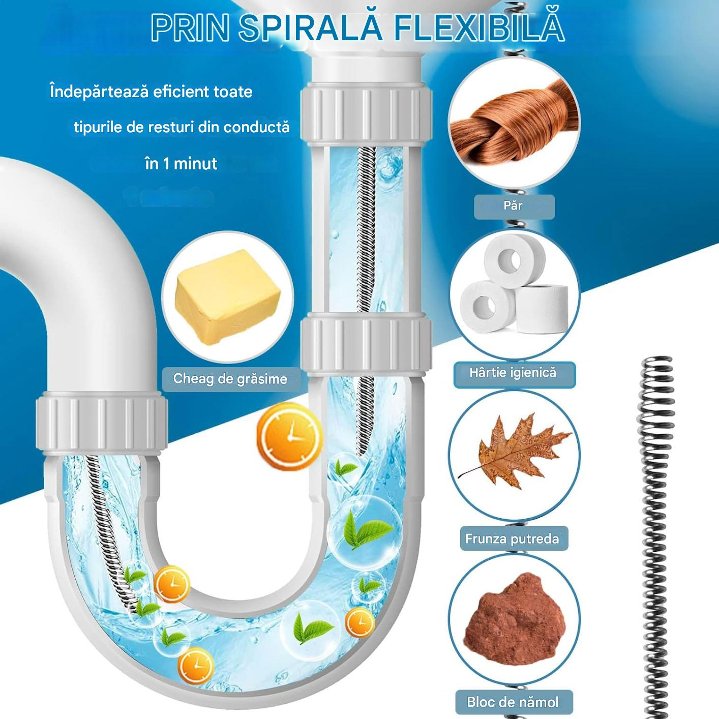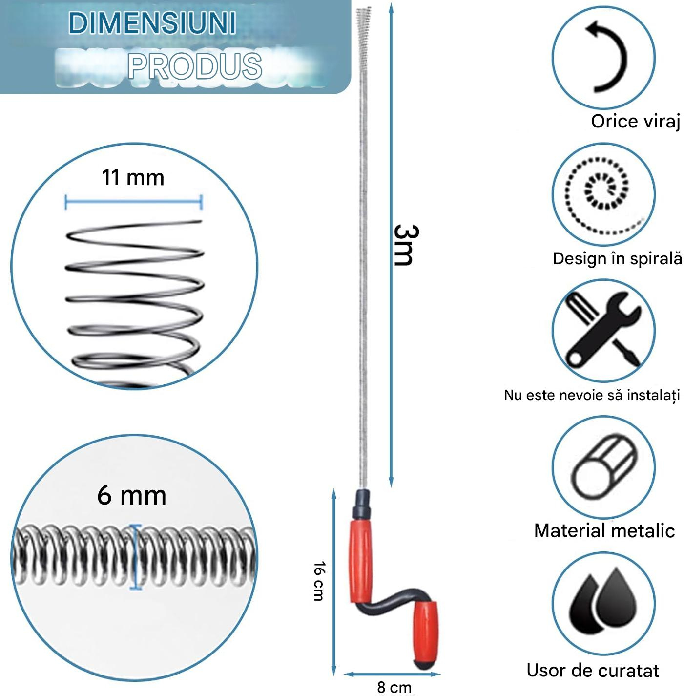 Fabricat din materiale de înaltă calitate: mâner din plastic pentru a asigura o aderență fermă, cu sondă de oțel durabilă. Lungime: 3 m, Diametrul: 1 cm. Curățătorul de scurgere poate merge adânc în scurgere pentru a îndepărta părul înfundat și murdăria și pentru a menține scurgerea apelor uzate.