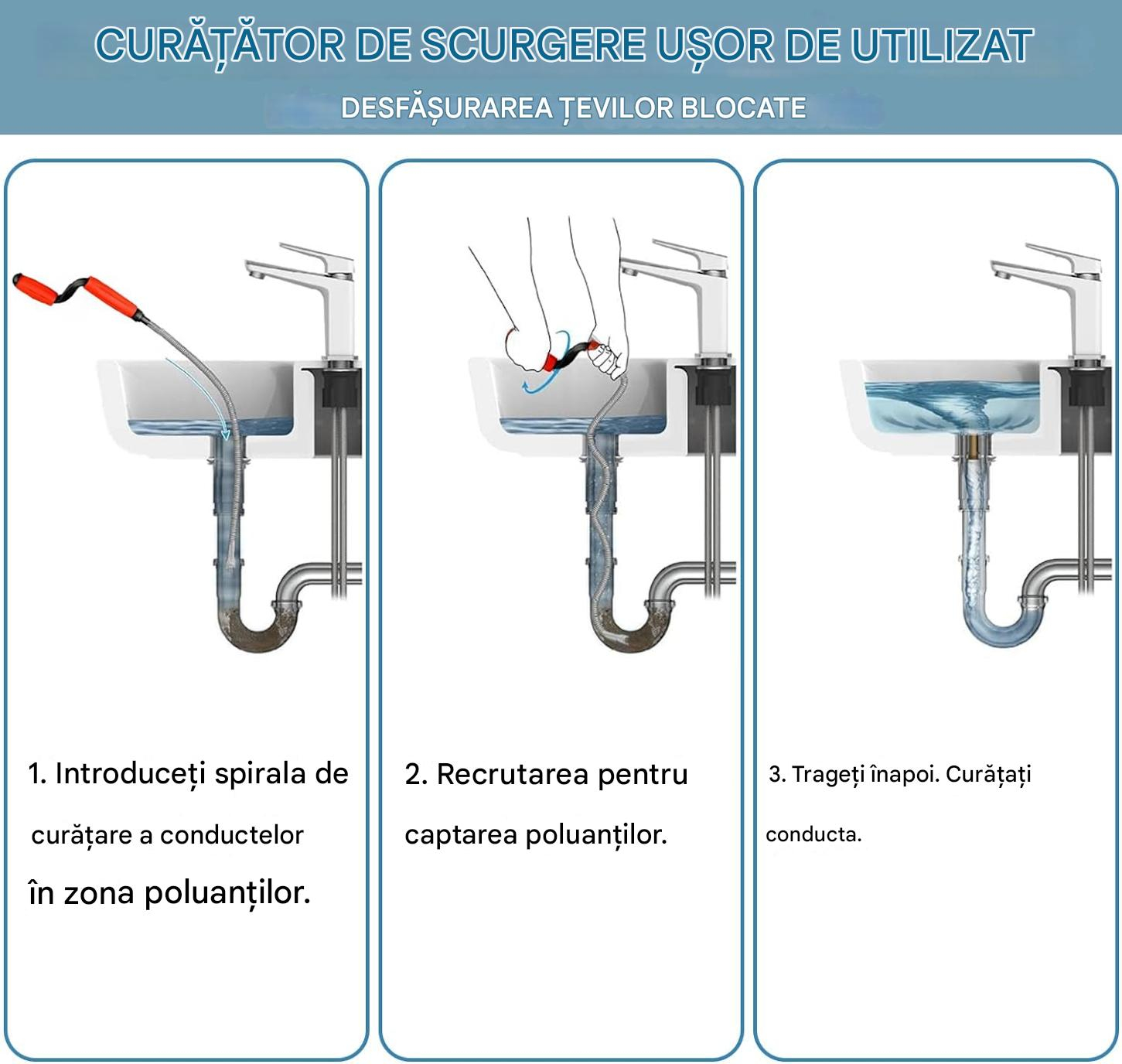 Curățarea eficientă și ușor de utilizat: nu trebuie să utilizați substanțe chimice periculoase și dăunătoare mediului care chiar și țevile care distrug chiar și conductele. Pur și simplu introduceți curățarea de scurgere în scurgere și rotiți-l ușor pentru a elimina blocajele din conductă. Acesta permite accesul ușor la a ajunge în zone și la îndepărtarea murdăriei din conducte. Nu mai sunt probleme cu chiuvetele înfundate.