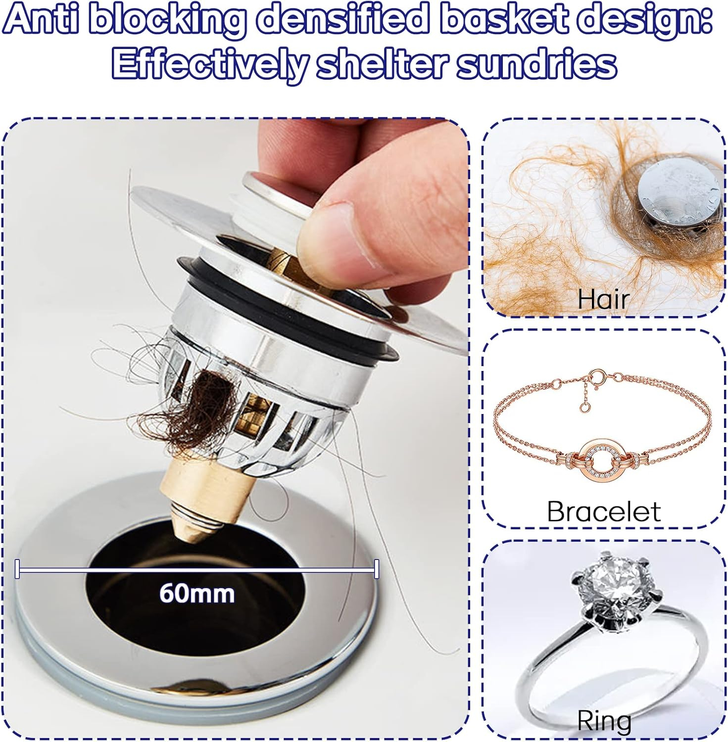 Design criptat Anti Clogging Baschet Această dop de chiuvetă este echipată intern cu un filtru de coș anti-înfundare criptat, care poate colecta eficient părul, bijuteriile și alte resturi pentru a preveni înfundarea țevii de scurgere. În același timp, poate fi dezasamblat pentru curățare. Dopul de scurgere a chiuvetei poate fi utilizat pe scară largă în băi, chiuvete și căzi