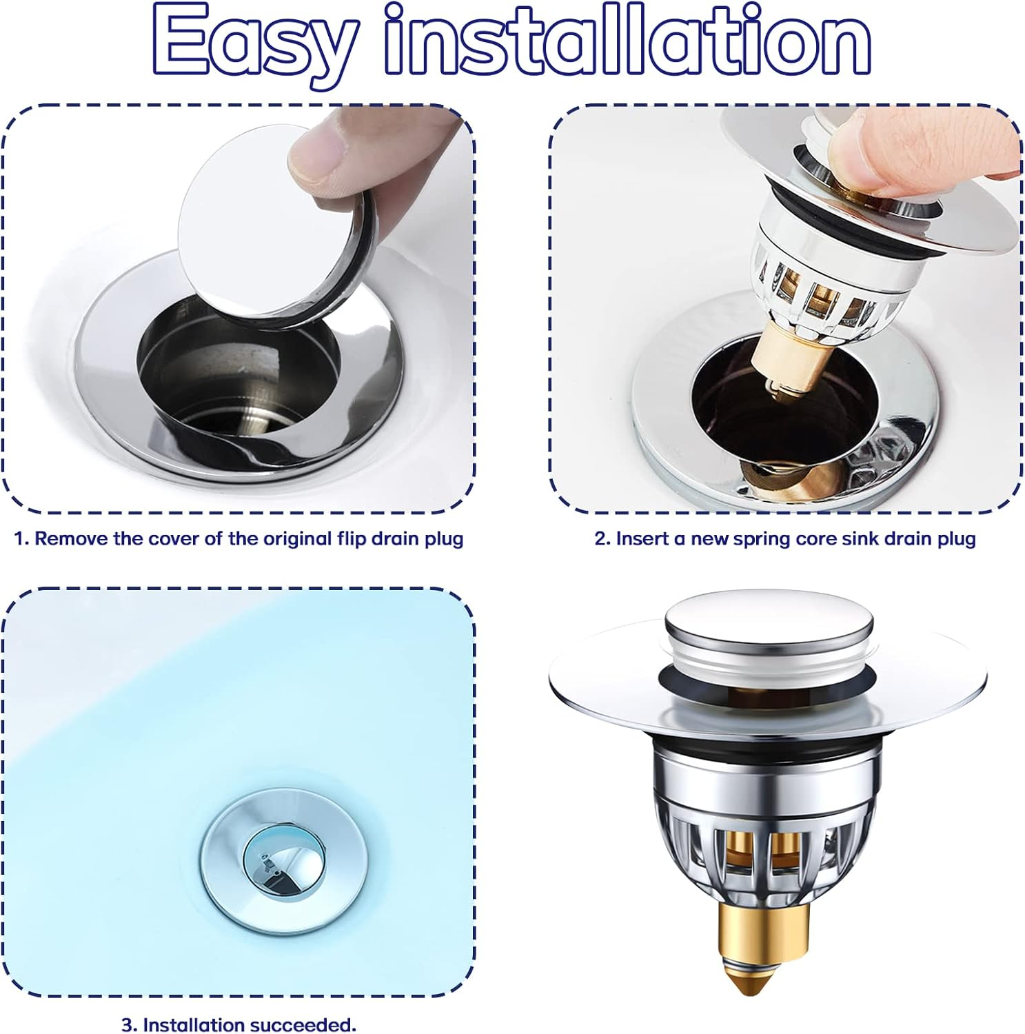 Ușor de instalat și utilizat, dopurile noastre de scurgere de la chiuvetă pot fi instalate fără unelte. Pur și simplu îndepărtați capacul de revers al vechiului filaj de in, și apoi introduceți dopul nostru de apă sărit pentru a finaliza instalarea. Când utilizați, pur și simplu apăsați-o pentru a drena sau sigila apa. Spune adio momentului jenant al vechiului dop de scurgere