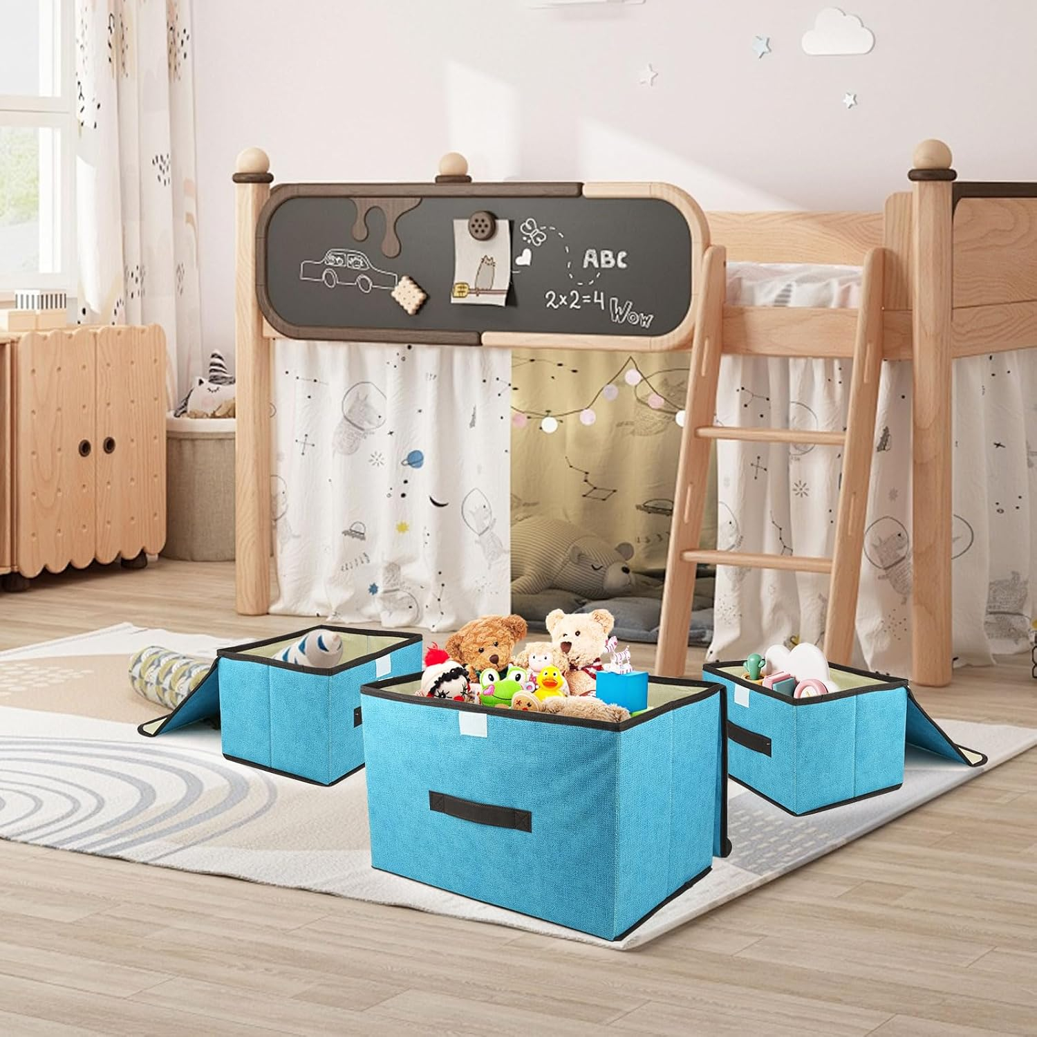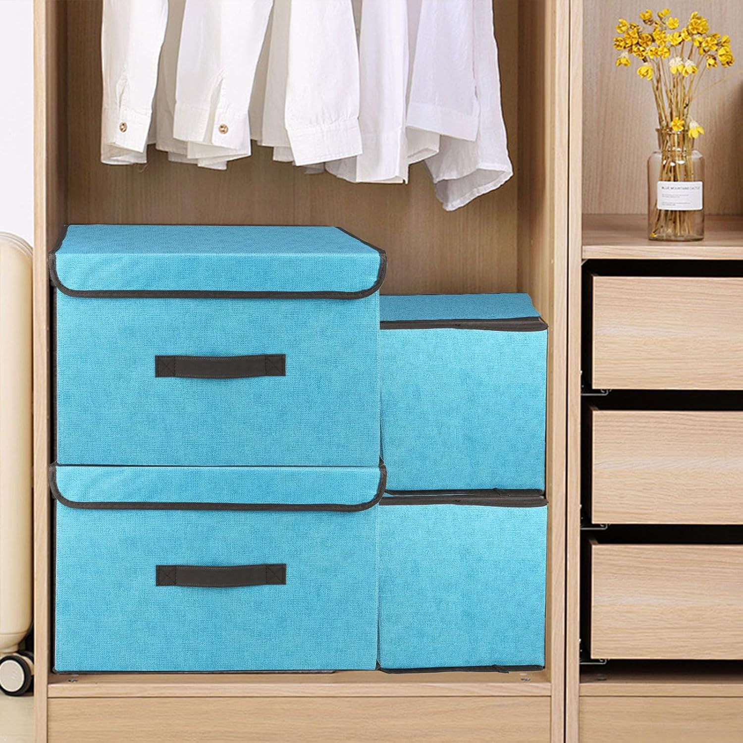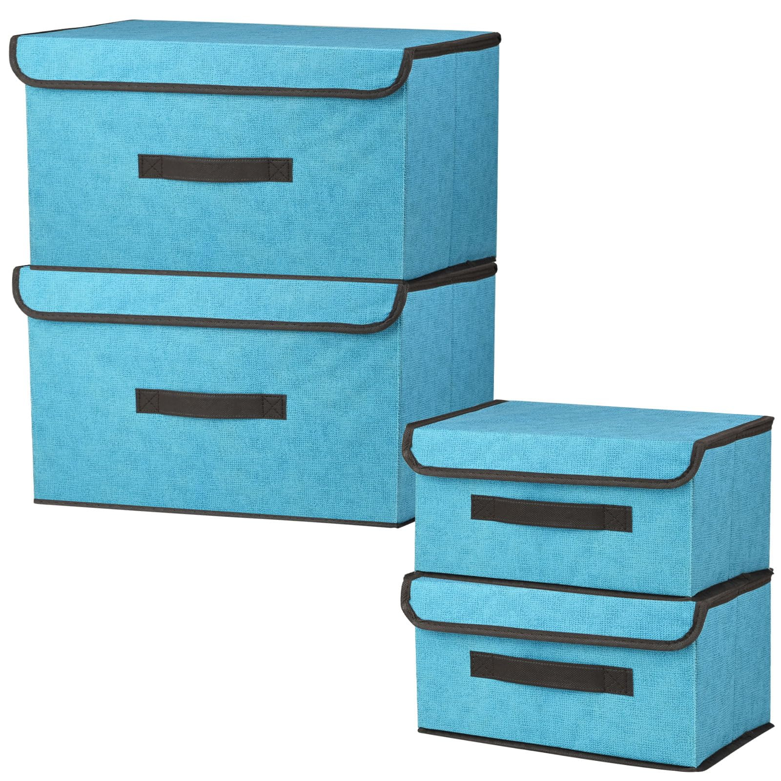 Cutii pliabile de depozitare cu capac, stivuibile, albastre, 2x"26 x 16 x 19" cm si 2x"36 x 23 x 24" cm