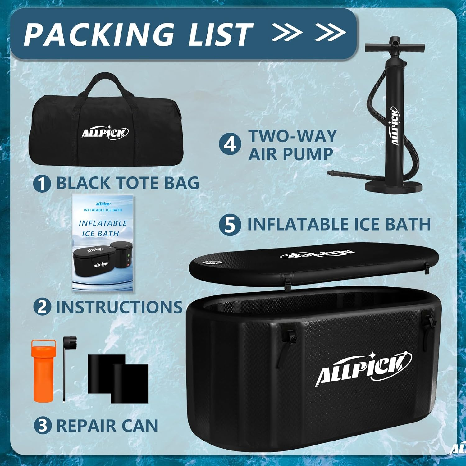 Portabil și ușor de instalat: Baie portabilă portabilă de gheață gonflabilă cu o geantă de transport inclusă + pompă de aer bidirecică + un kit de reparație + instrucțiuni (fără lipici), astfel încât să vă puteți bucura de beneficiile unei băi de gheață oricând și oriunde, indiferent dacă sunteți acasă, în sala de gimnastică sau în mișcare.