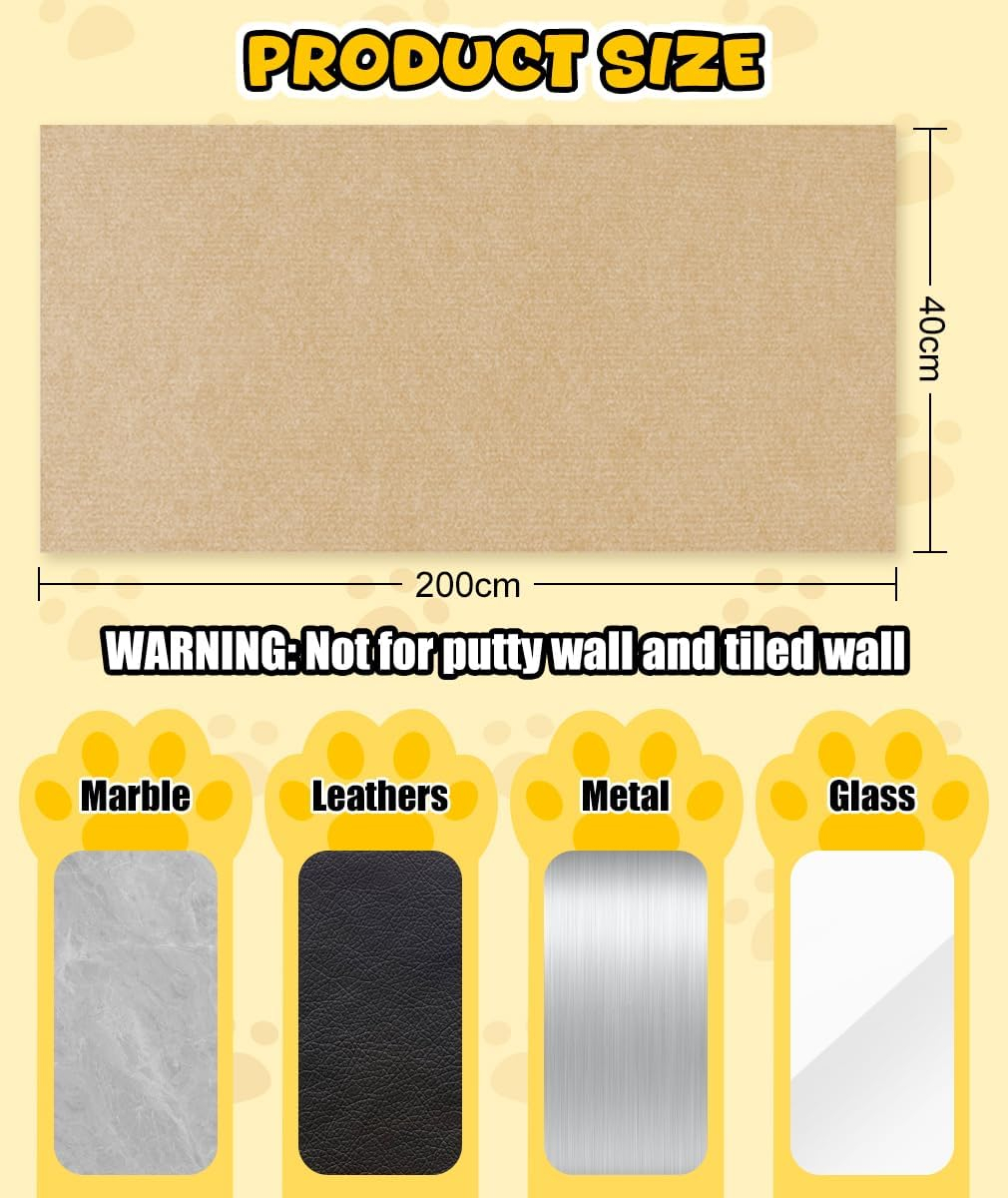 Adezivă puternică: plăcuța de zgâriere pentru pisici are o aderență excelentă și poate fi instalată cu ușurință pe aceste suprafețe, cum ar fi lemn, plastic, sticlă, beton, piele etc. Mașina anti-răzuire a pisicii poate fi, de asemenea, ușor de îndepărtat, fără a lăsa găuri inestetice sau urme pe perete, fără a fi nevoie să vă faceți griji cu privire la provocarea de daune asupra peretelui