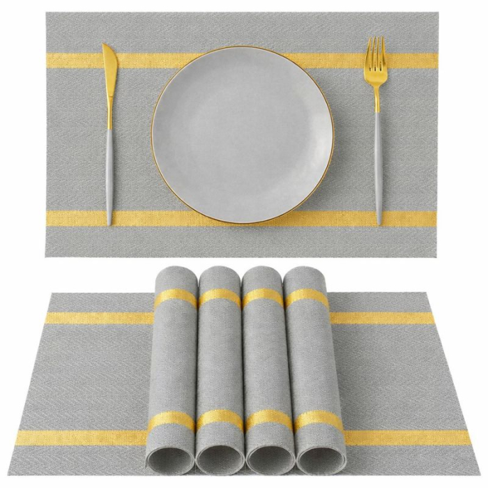 Suport de farfurii pentru servirea mesei 45x30 cm, set 6 bucati, gri cu auriu