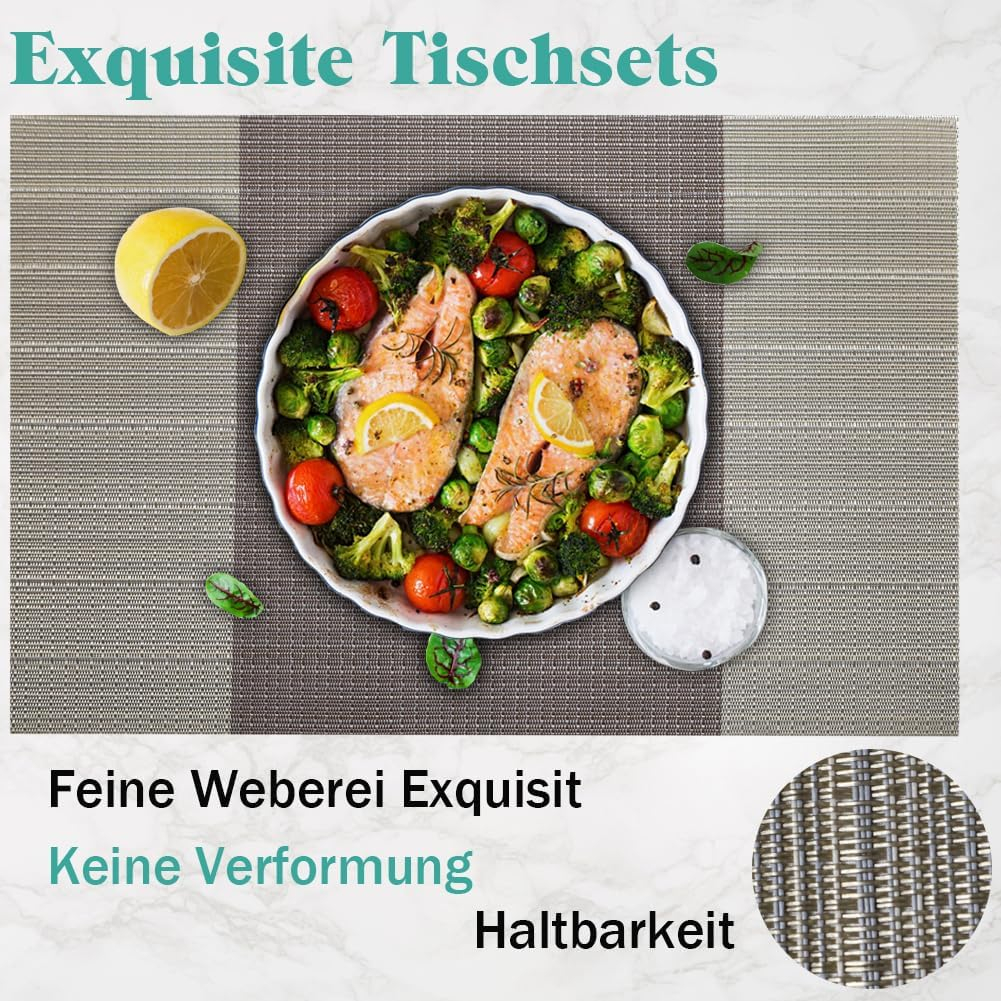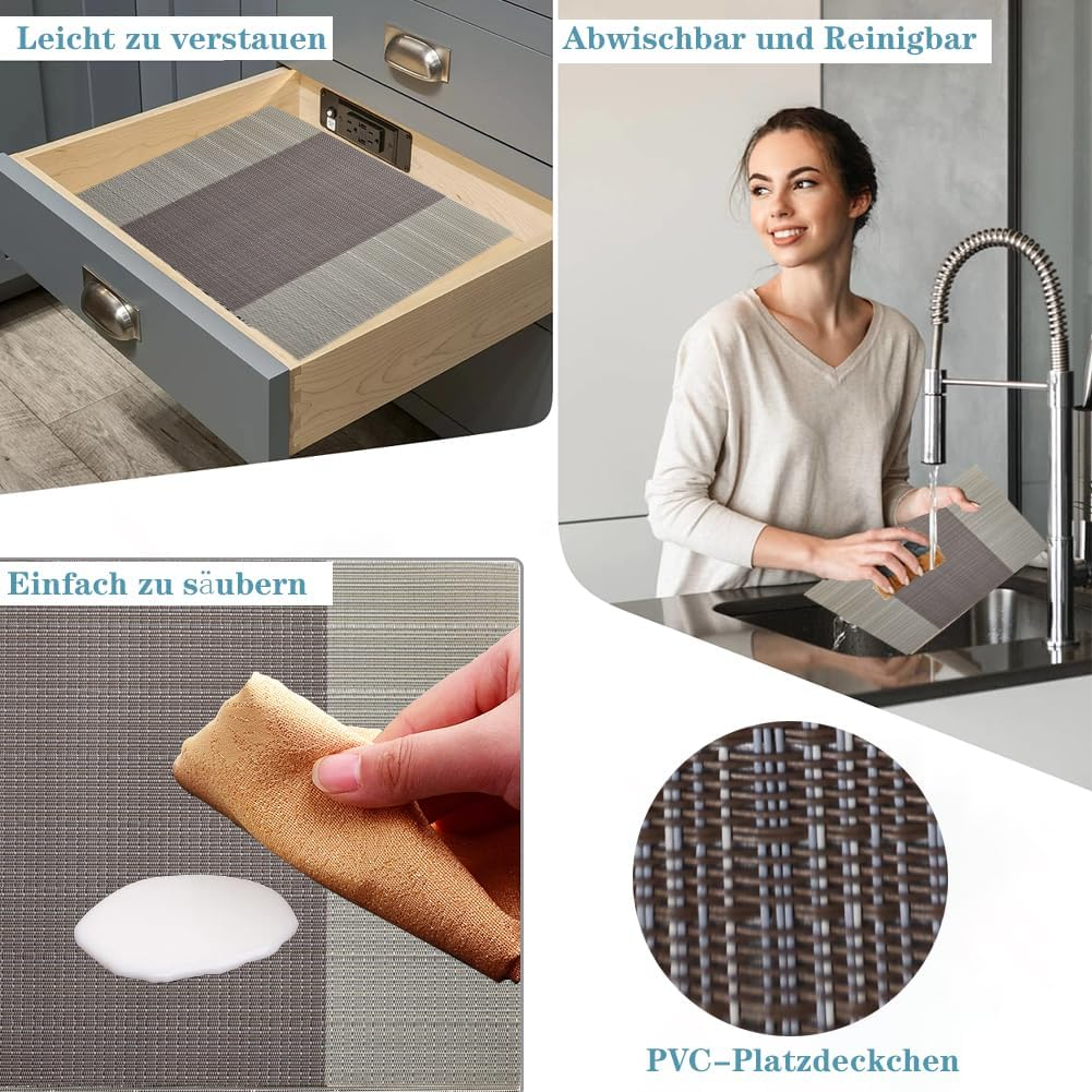 • Dimensiune și material: 18,1 x 13 inci (45cmX30cm) , Set de plasament de 8 țesute cu materiale ecologice de înaltă calitate din PVC și poliester, durabile și nededefați.
