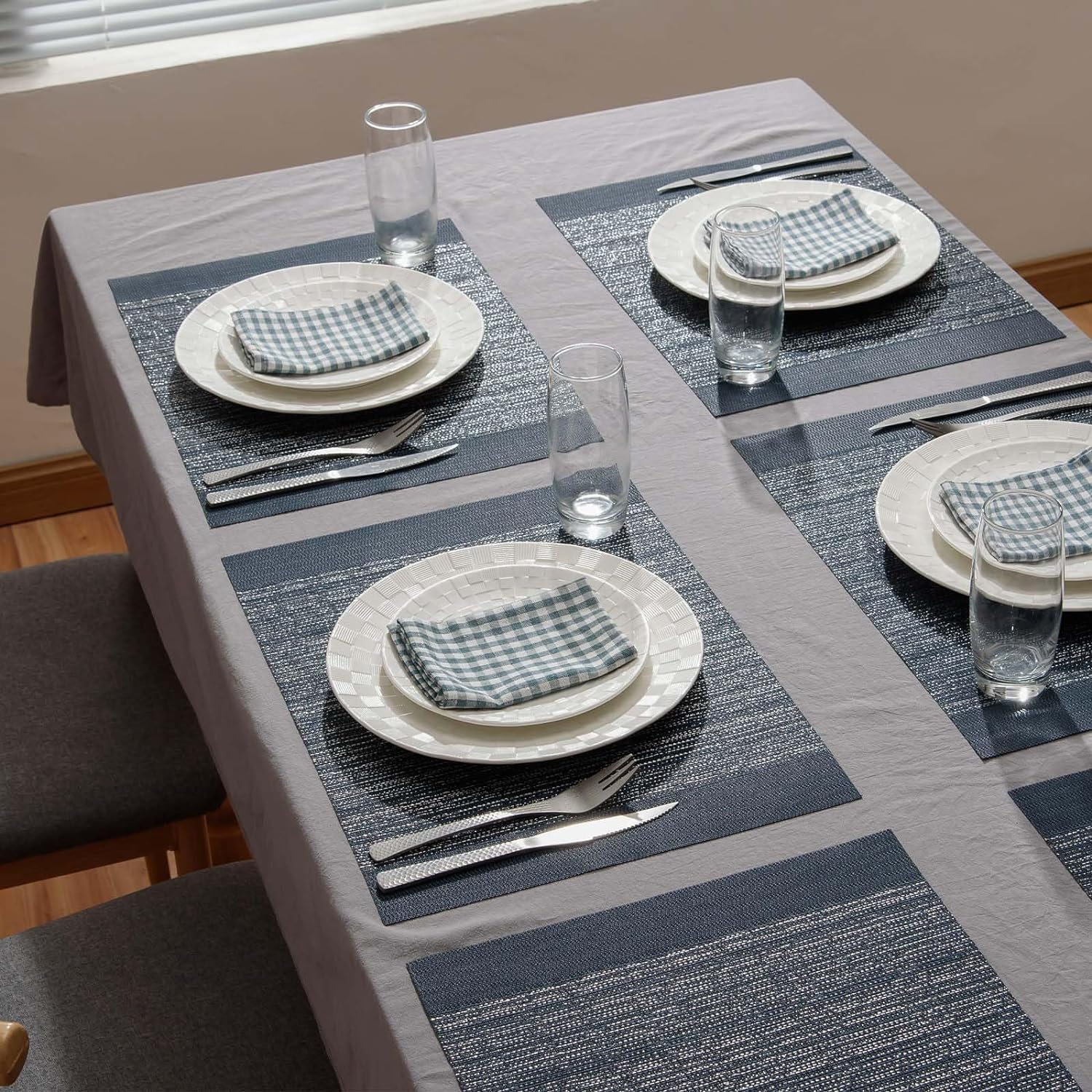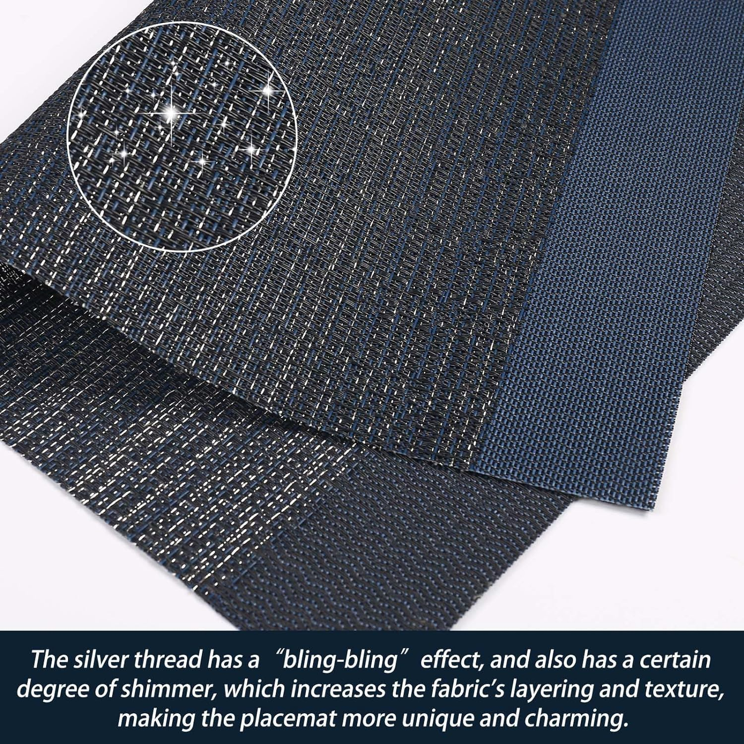 Dimensiune și material: 18,1 x 13 inci (46cmX33cm) , Set de plasament de 4 țesute cu materiale ecologice de înaltă calitate din PVC și poliester, durabile și nededefați.