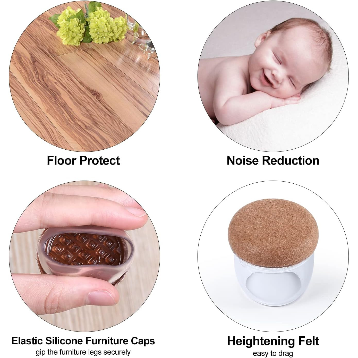 • Nu se carie, fara zgarieturi, nici un scaun nostru negru de scaun negru Hardwood Protector, protectorii de podea sunt modernizati cu un tampon de pasla ingrosata. Capacele picioarelor scaunului au o aderenta puternica, se infasoara strans, mai rezistenta la frecare si fara zgarieturi. Reducerea zgomotului, oferind familiei tale un mediu linistit.