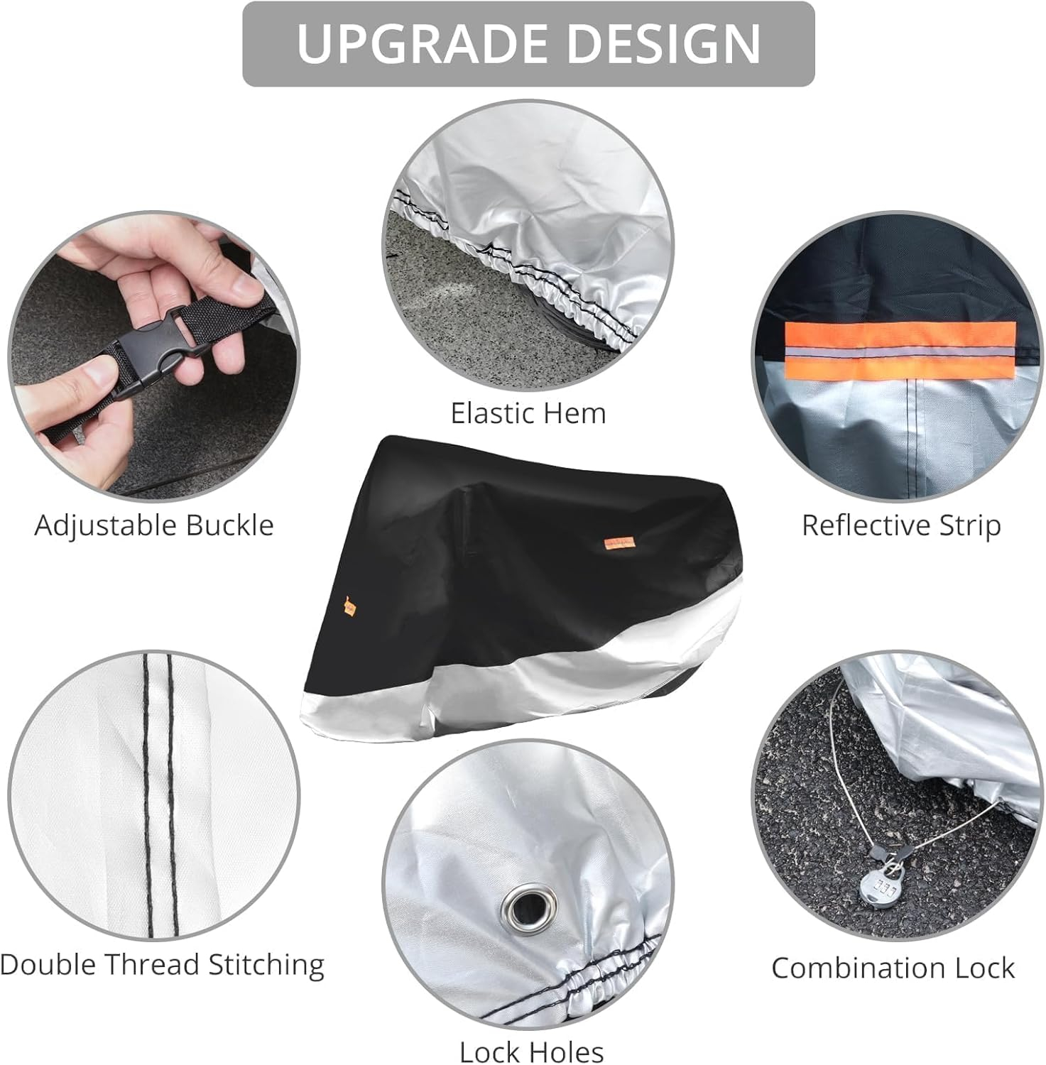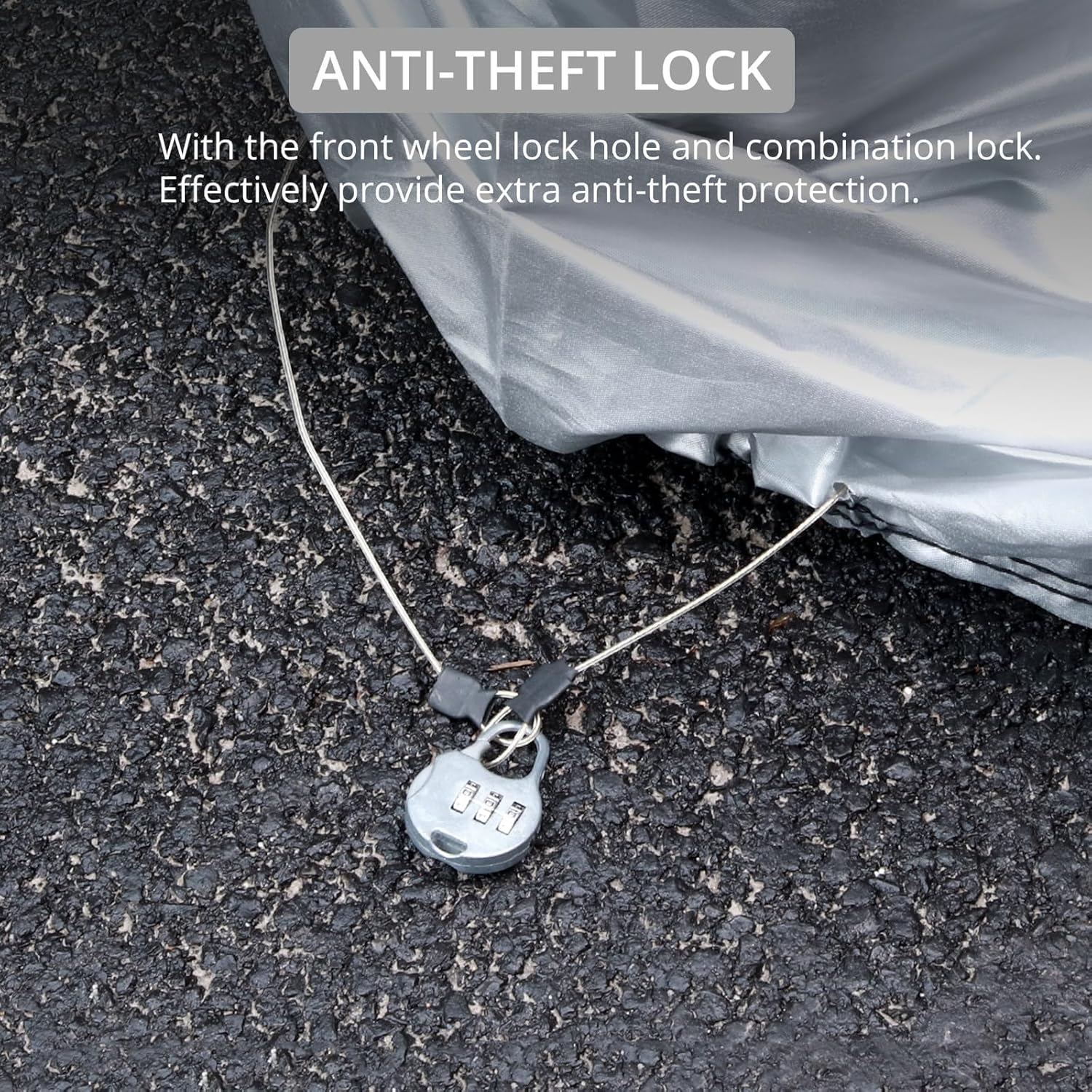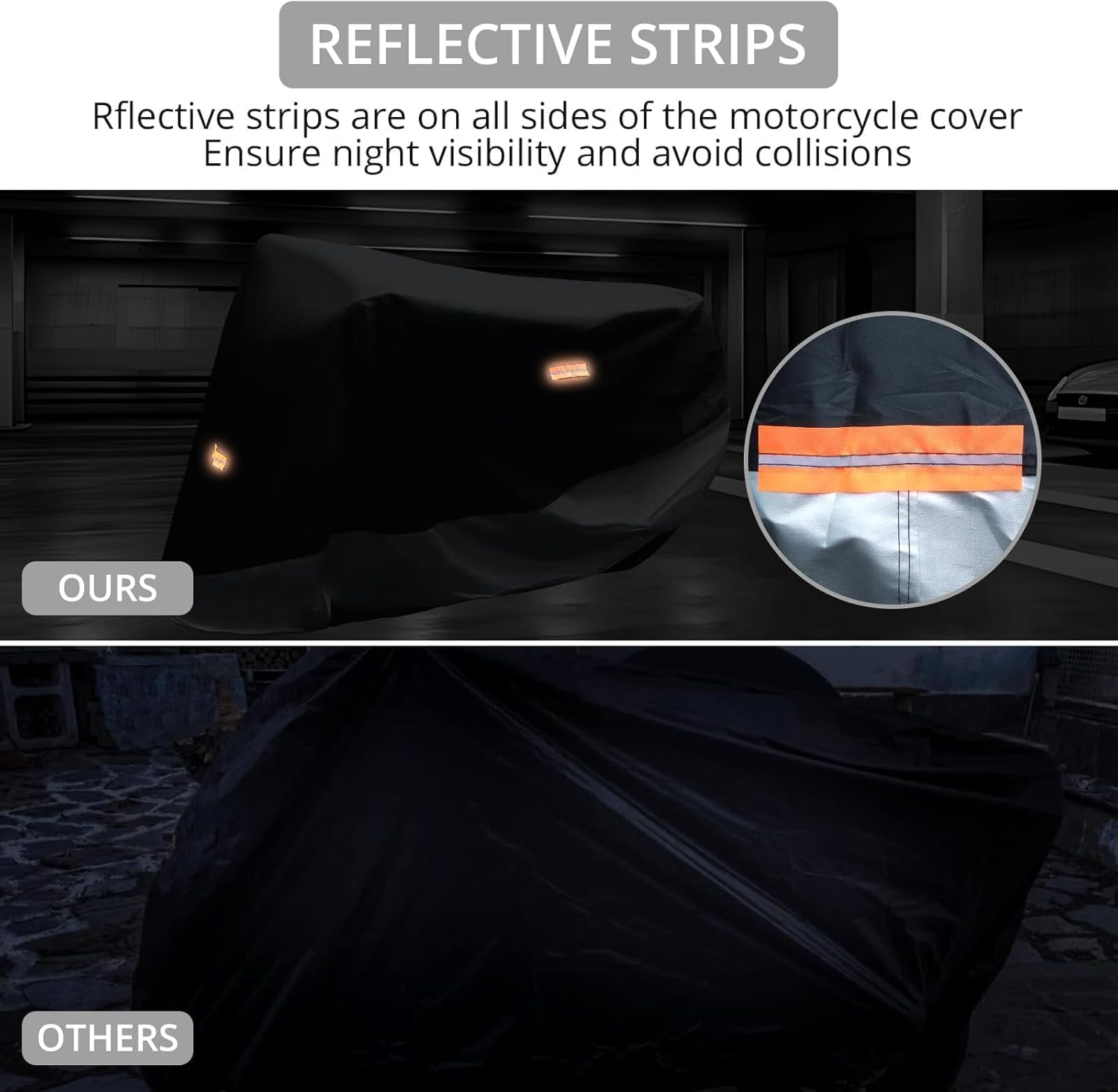Impermeabil: Fabricat din material plastic din argint negru premium 20D, capacul motocicletei noastre este robust și rezistent la lacrimi. Performanță superioară impermeabilă. Păstrați motocicleta ordonată și uscată. Cu cusături duble de filet, este mai puternic și mai fiabil pentru utilizare lungă