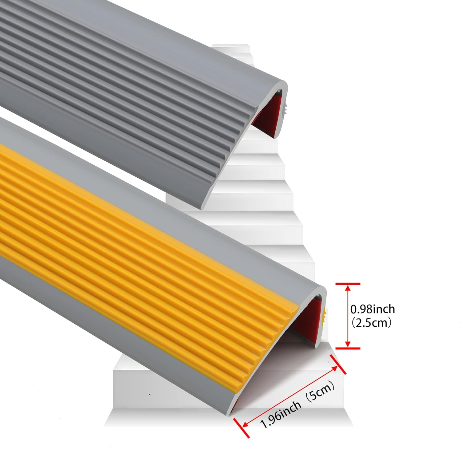 Siguranță îmbunătățită - Nasingul nostru anti-slipi oferă o tracțiune excelentă, datorită materialului său de înaltă calitate și designului triunghiular zimțat îngroșat. Păstrați-vă familia în siguranță cu această alternativă durabilă și elegantă la benzile decorative metalice. Experimentați echilibrul perfect între siguranță și accesibilitate cu produsul nostru excepțional