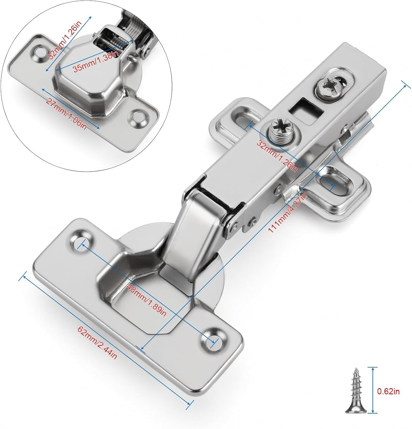 Această balama de dulap este potrivită pentru ușile complet acoperite pe dulapurile fără ramă care acoperă aproape complet dulapul. Fiecare balama poate fi deschisa si inchisa cu 105° si este echipata cu 4 fuliere de fixare. Dimensiunile balamoseriei pot fi găsite în imagine.