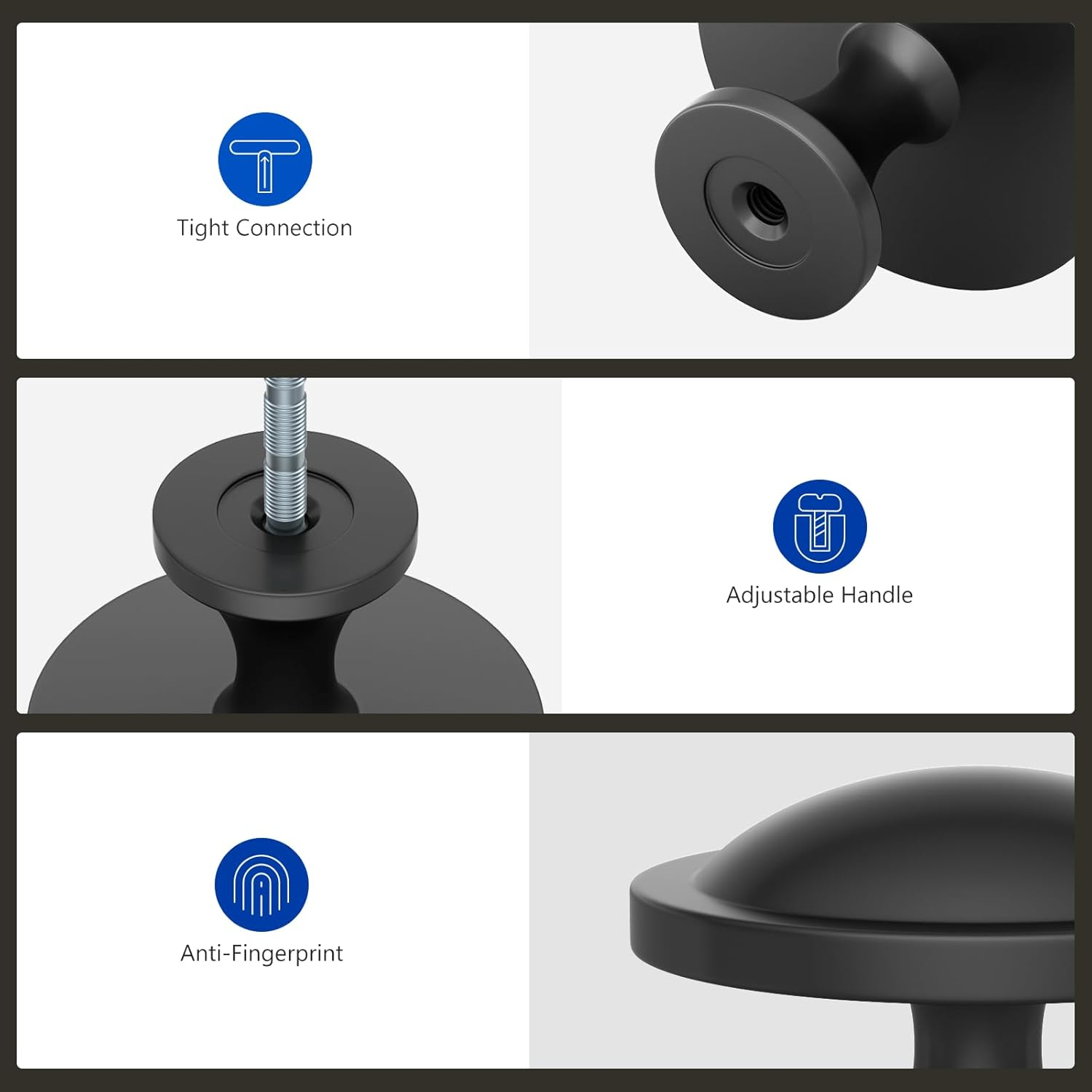 • Ce primești: vei primi 10 butoane de cabinet. Fiecare buton este echipat cu șuruburi M4 standard de 25 mm și 45 mm. Șuruburile mai lungi pot fi reglate în funcție de grosimea dulapului