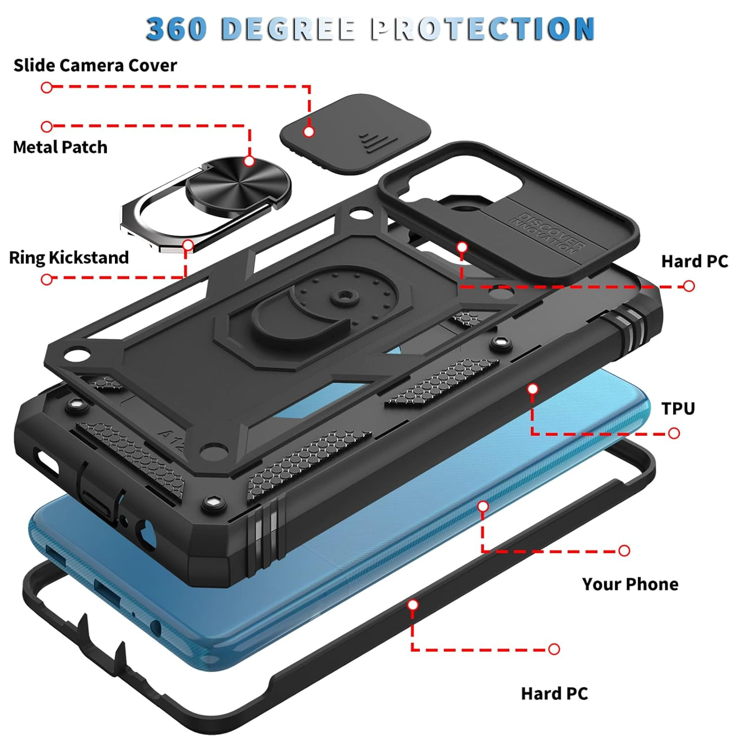 • Aparat de protecție pentru cameră și ecran: capac delicat de alunecare a camerei, mai mare decât obiectivul ridicat, blocat într-un protector cu obiectiv premium, Marginea carcasei este mai mare decât ecranul, protecția maximă pentru durata de viață a telefonului mobil.