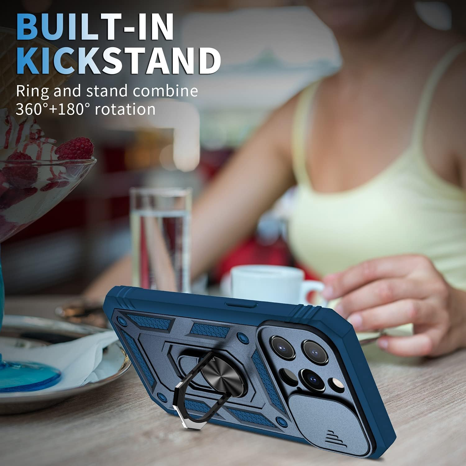 • Aparat de protecție pentru cameră și ecran: capac delicat de alunecare a camerei, mai mare decât obiectivul ridicat, blocat într-un protector cu obiectiv premium, Marginea carcasei este mai mare decât ecranul, protecția maximă pentru durata de viață a telefonului mobil.