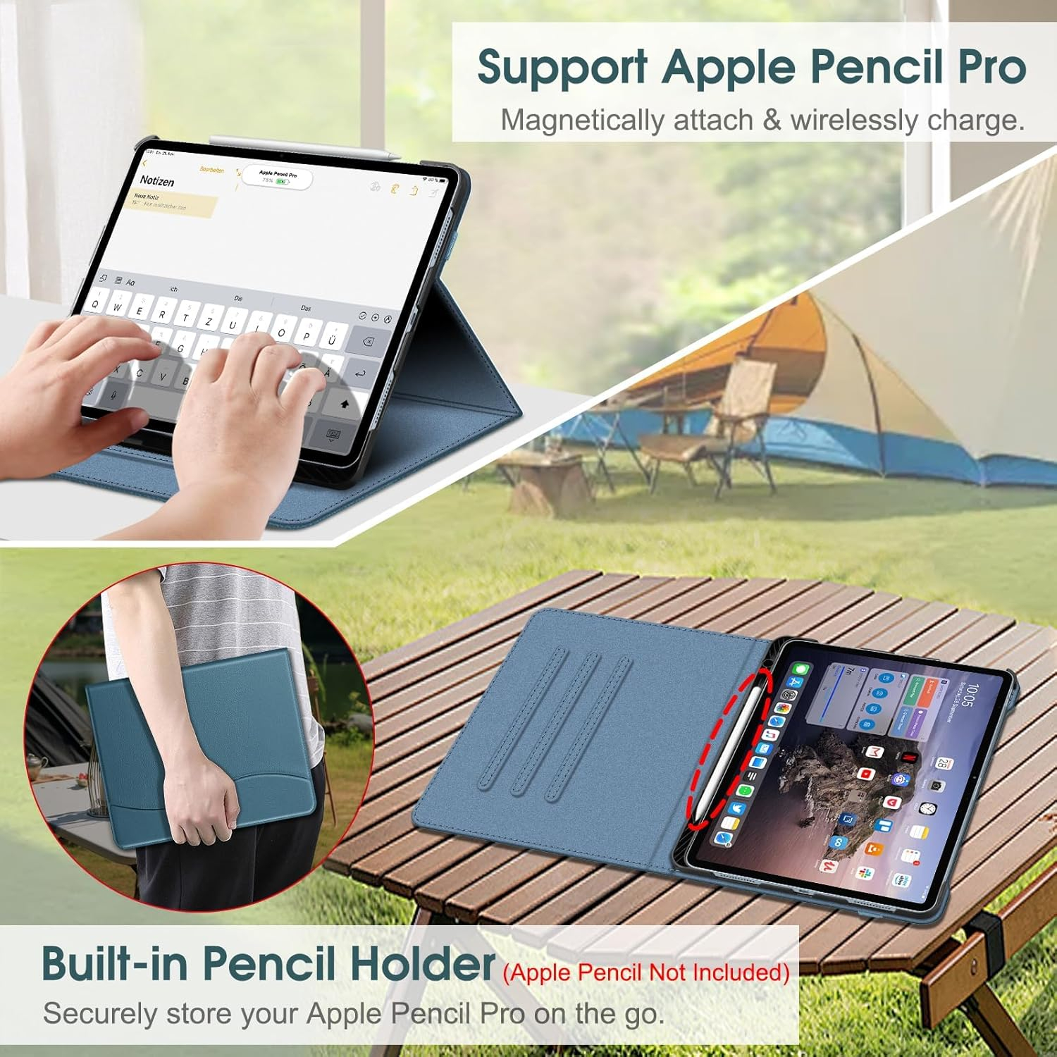 Husa tableta iPad Air 13 inch (2025/2024) M3/M2, suport de vizualizare multi-unghi, buzunar și suport pentru creion, trezire automată și somn