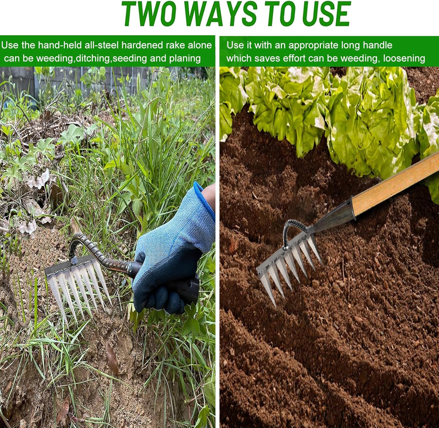 Greblă de grădină rezistentă din metal și oțel carbon, eficientă pentru buruieni, 7 dinti