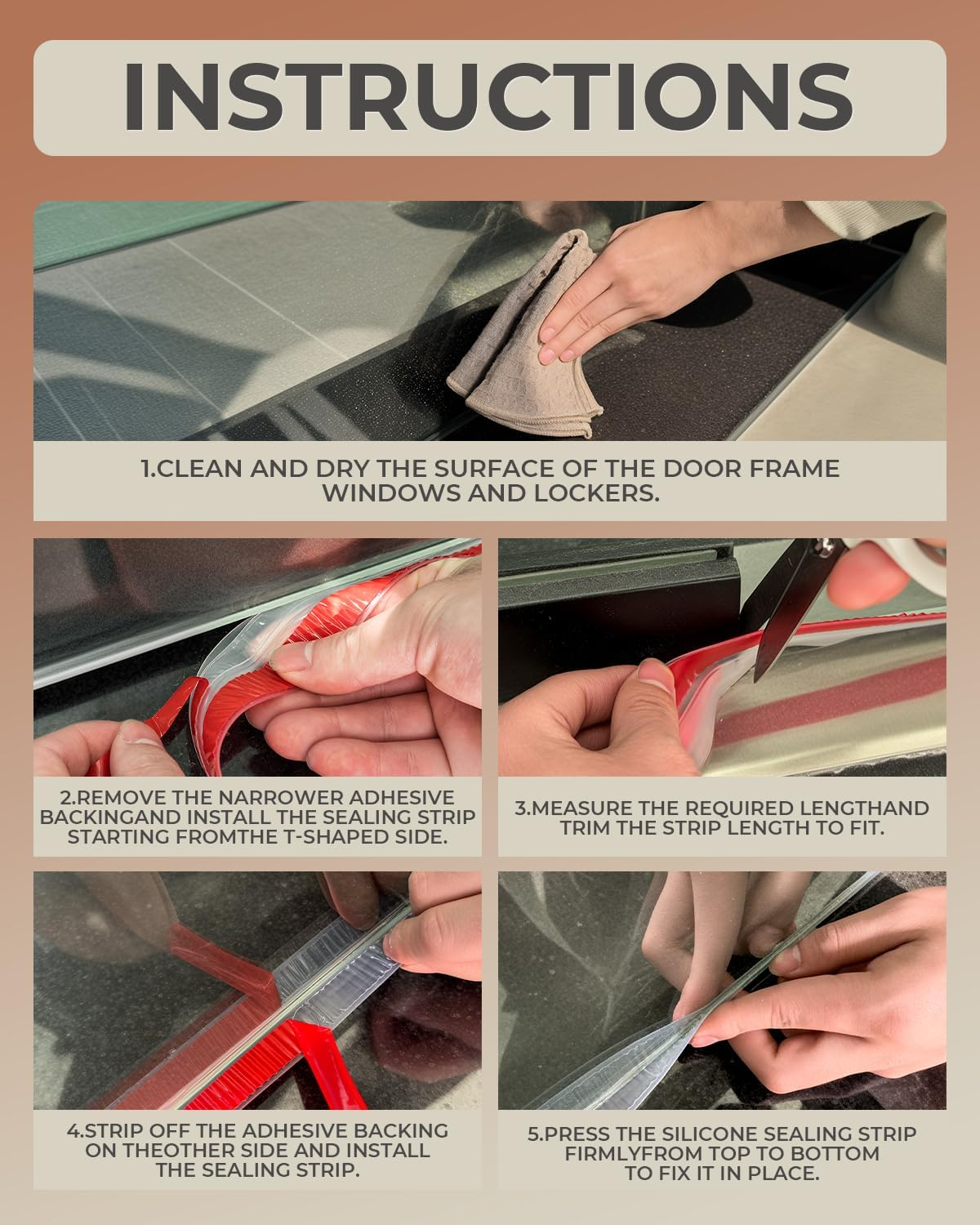 Adezivă dublă: Banda noastră de etanșare a ușii, cu suport adeziv dublu, design auto-adeziv, aderență puternică poate asigura o potrivire fermă și stabilă atunci când este lipită la suprafață și este durabilă și nu ușor de decojit.