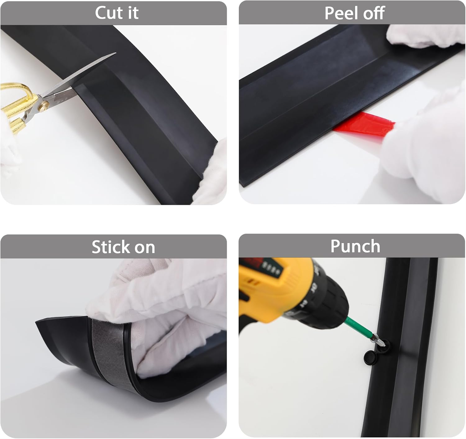 Easy To Install: Puteți mai întâi să-l tăiați la lungimea dorită cu foarfece, apoi să desprindeți banda adezivă de pe spate și să o lipiți în poziția corespunzătoare.