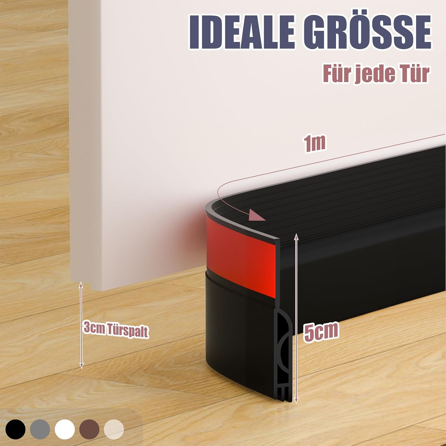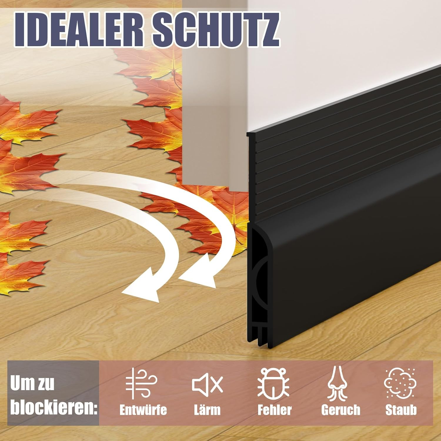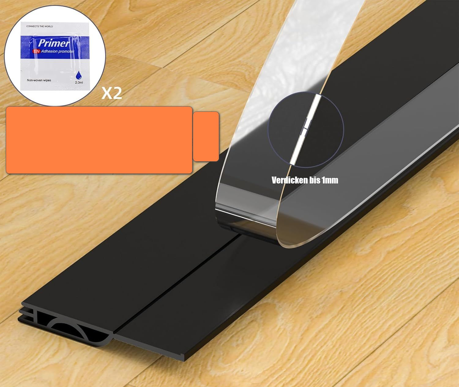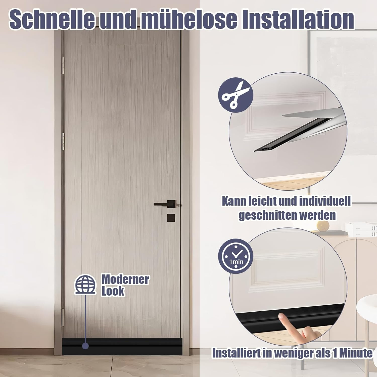 Flexibilitate: Excluzătorul de uși din silicon are o canelură elastică de 1 mm în mijloc, care se deformează flexibil. Acest lucru minimizează frecarea, ușile sunt mai ușor de deschis și de închis, iar podeaua rămâne nedeteriorată. Excluzătorul de pescării este, de asemenea, echipat cu o bandă adezivă largă de 2 cm, care se lipește ferm de ușă. Banda de protecție proeminentă din partea de sus se potrivește perfect la ușă și împiedică scăderea puterii adezive