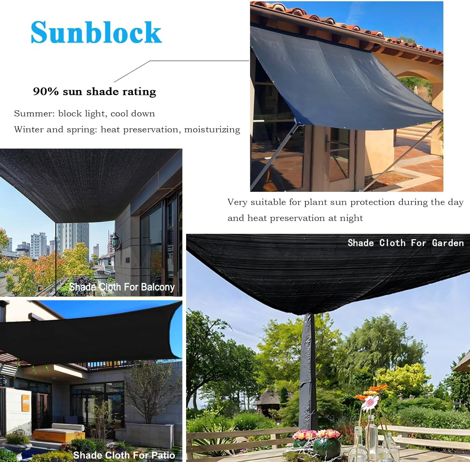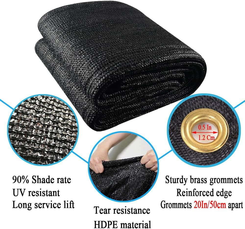 Shese Shade Cloth pentru GardenVocray negru pânză de umbră oferă o protecție UV excelentă și umbrire a soarelui pentru grădinărit, sere și spații în aer liber. Cu o rată de umbrire de 90%, plasa de umbră de soare blochează în mod eficient razele UV dăunătoare, reduce căldura și reglează expunerea la lumina soarelui, temperatura și umiditatea, creând un mediu confortabil pentru plante, legume, flori, ghiveci. Ideal pentru grădini, balcoane, terasă, seră, pergole, pridvor, canisa pentru câini, cotețe de pui și multe altele.