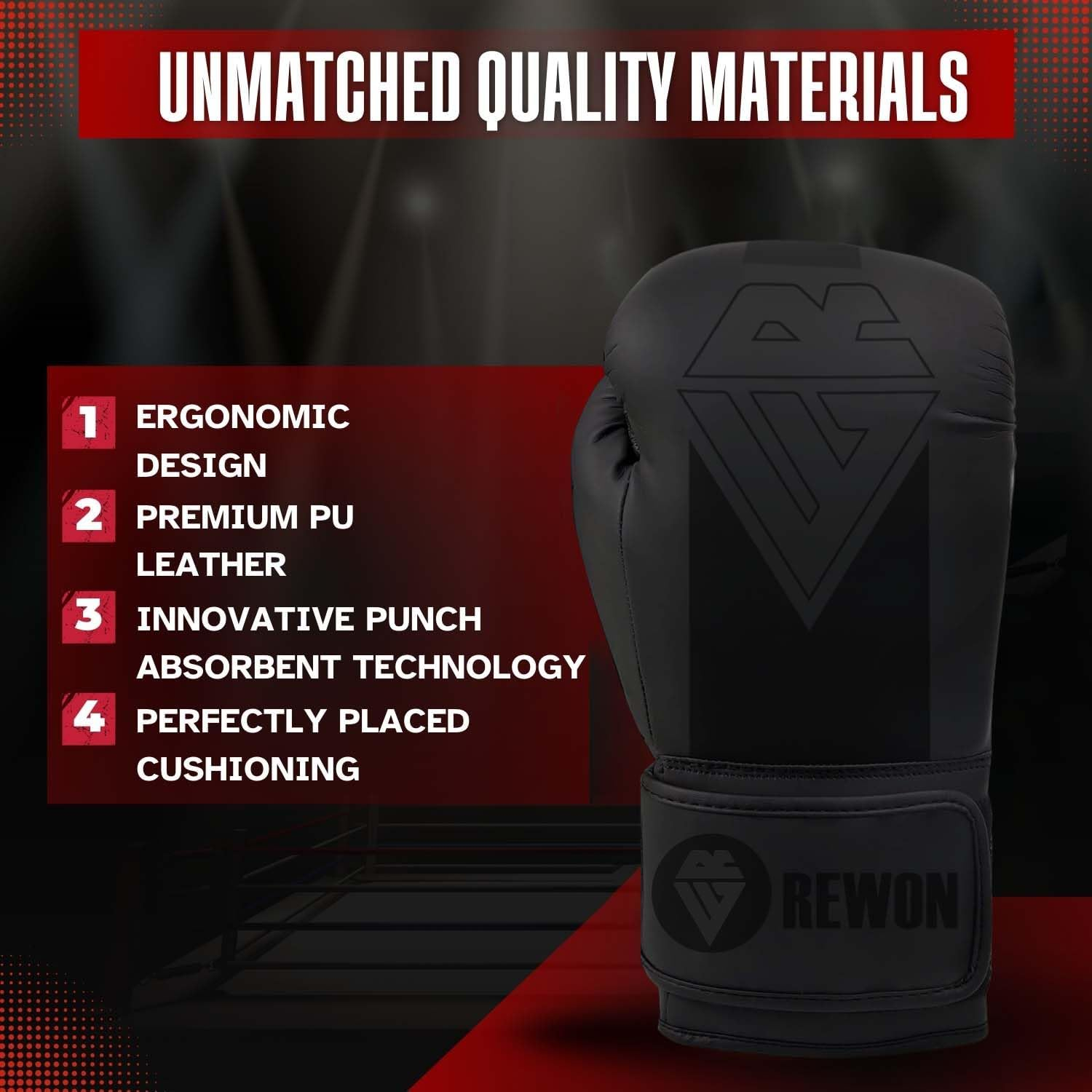 Construcții de înaltă calitate: Mănușile avansate de box din piele artificială Rewinon Gear oferă performanțe de primă clasă atât în timpul antrenamentului, cât și în timpul sparringului. Designul în formă anatomică asigură o postură naturală și confortabilă a mâinilor și îmbunătățește experiența dvs. de box.