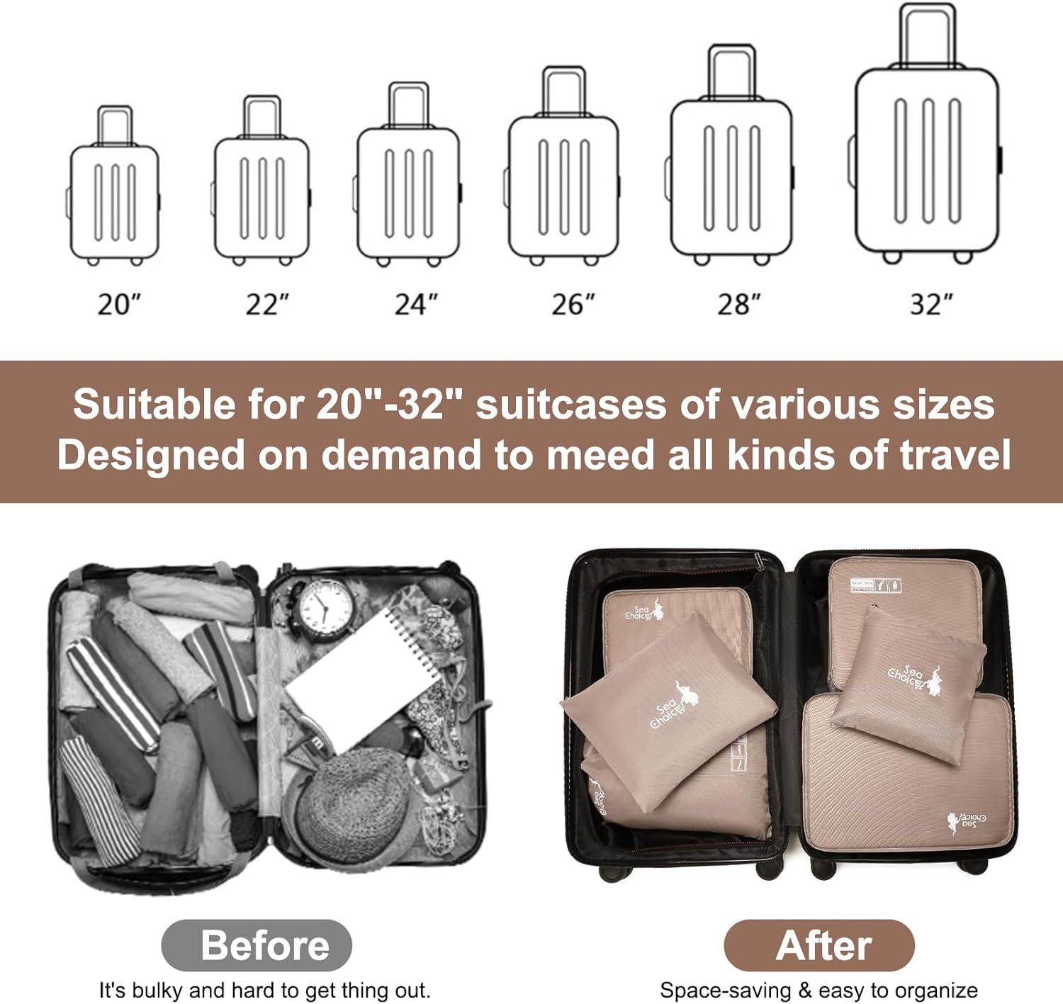 • Sistemul independent de depozitare: Designul de 6 seturi oferă compartimente individuale pentru încălțăminte, produse cosmetice, lenjerie intimă și accesorii, menține resursele de călătorie organizate.