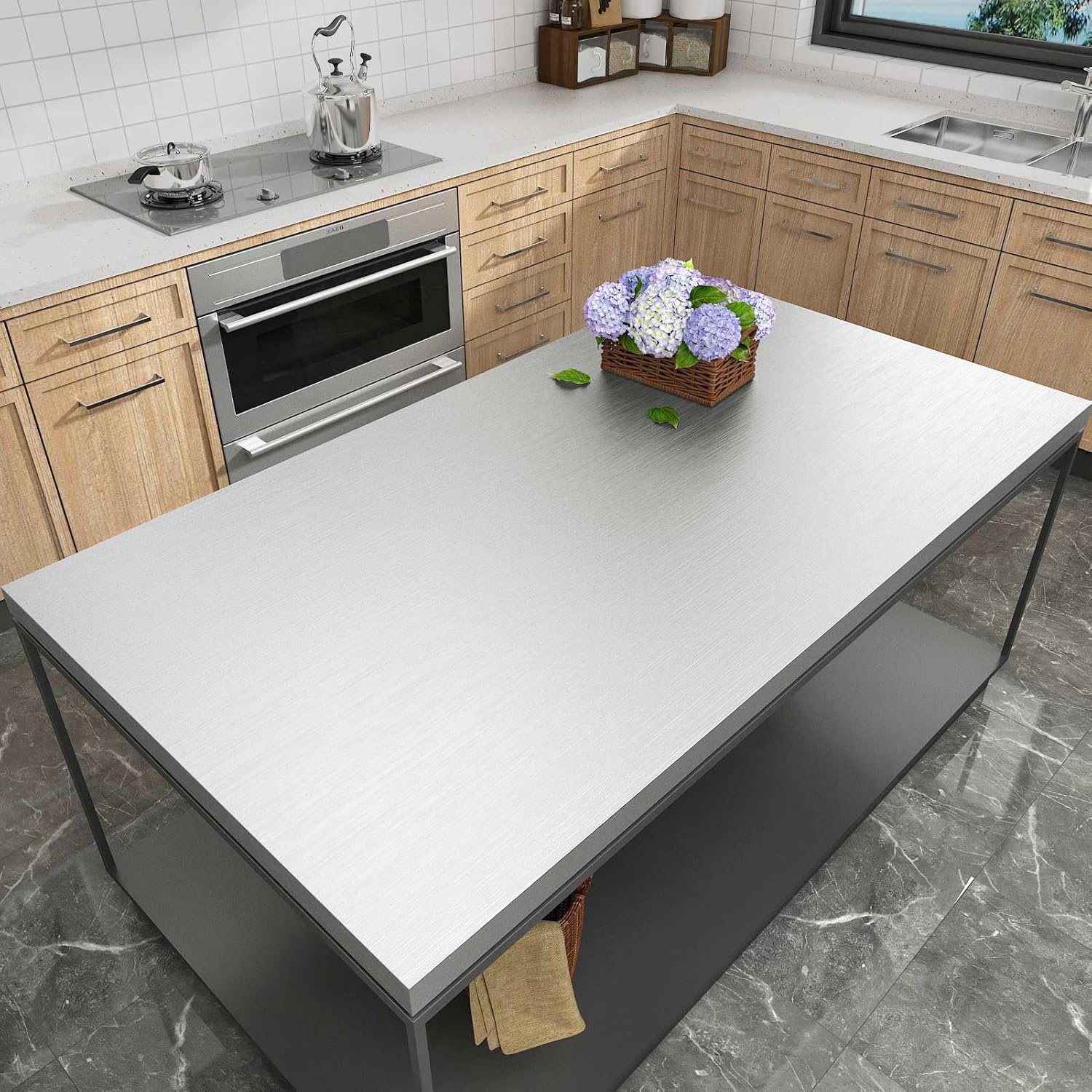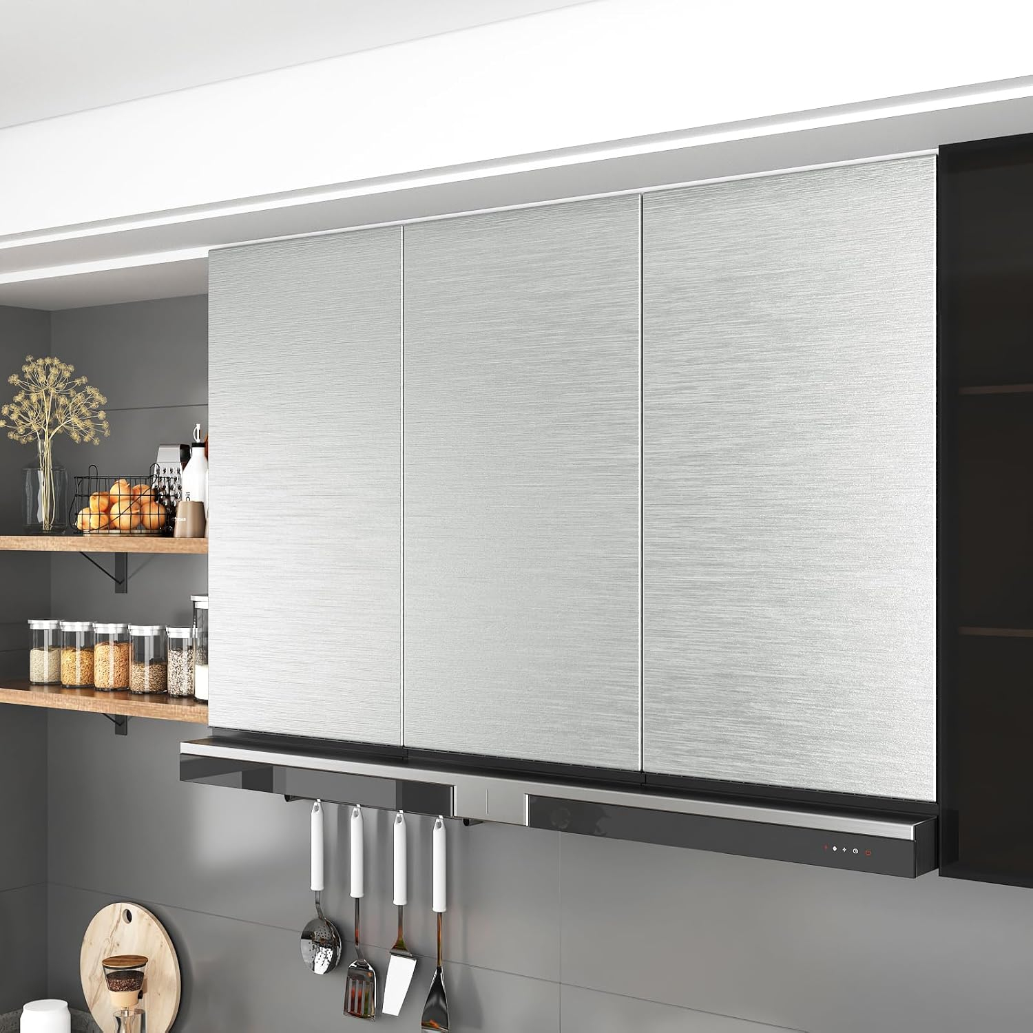 Proprietate funcțională de tapet de bucătărie argintie