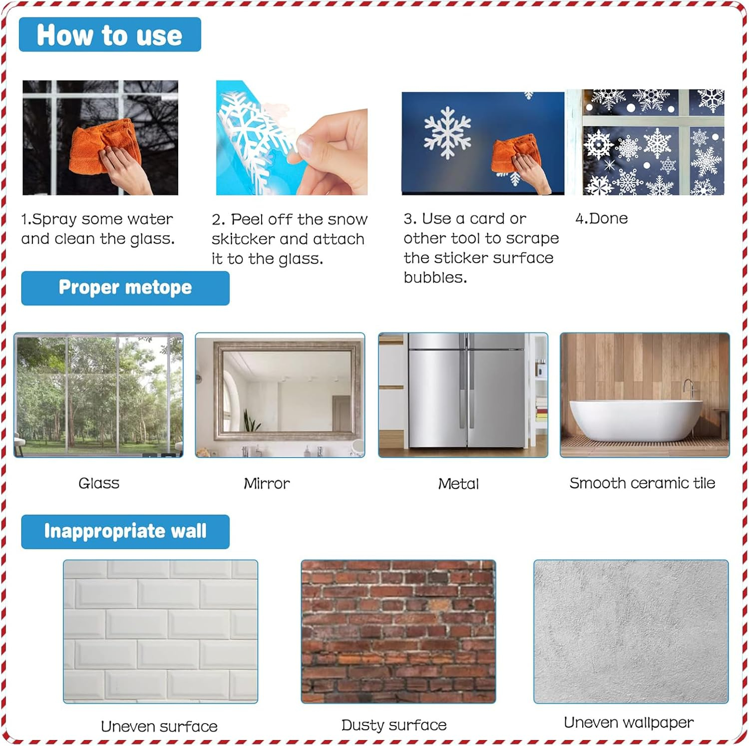 • Utilizare multiplă: autocolante autoadezive pentru copii, pot fi atașate la orice suprafață netedă, cum ar fi gl, ferestre, uși, oglinzi, pereți, gresie, mobilier etc. Decorațiuni de Crăciun pentru familii, cafenele, magazine, magazine de îmbrăcăminte, birouri, restaurante, supermarketuri, vitrine etc.