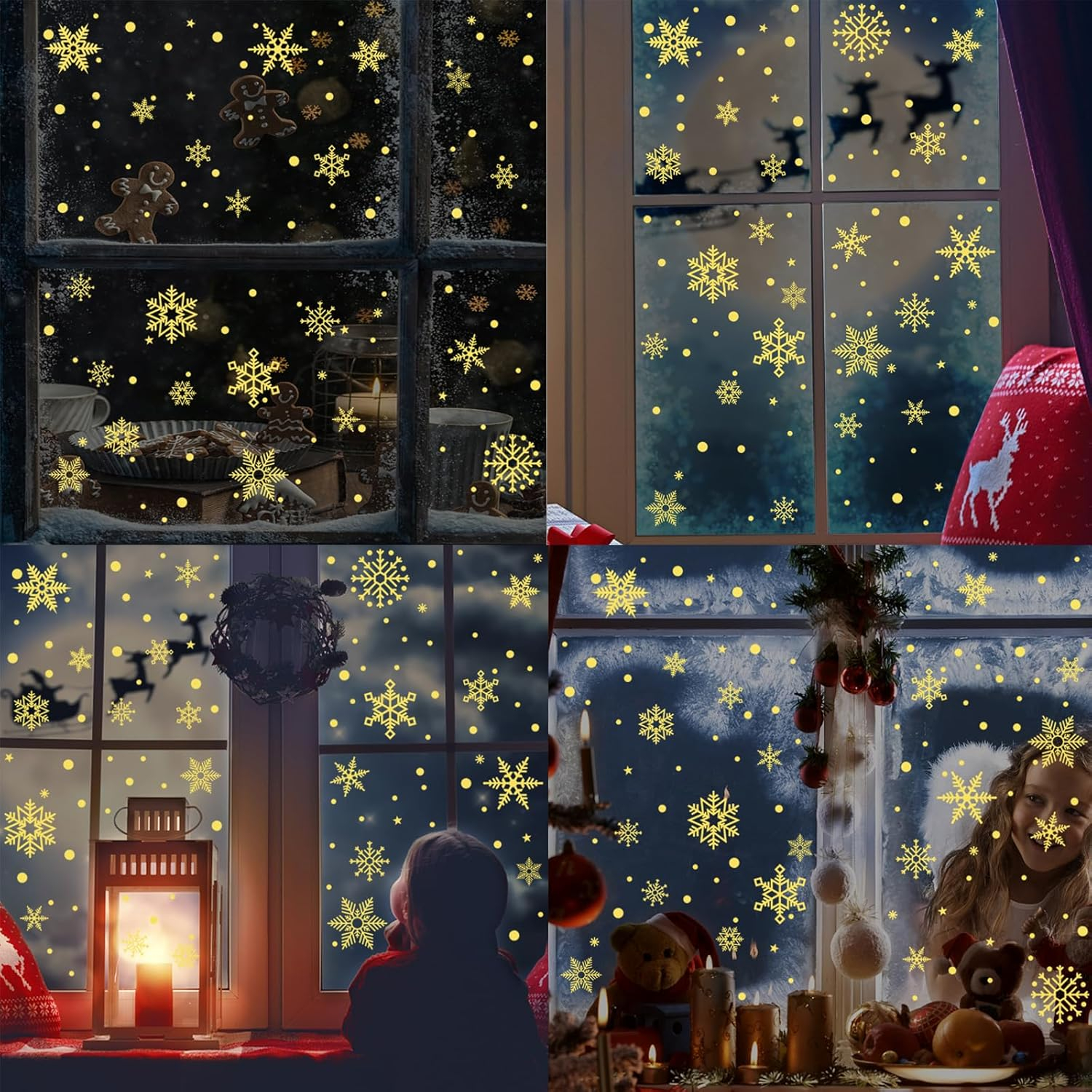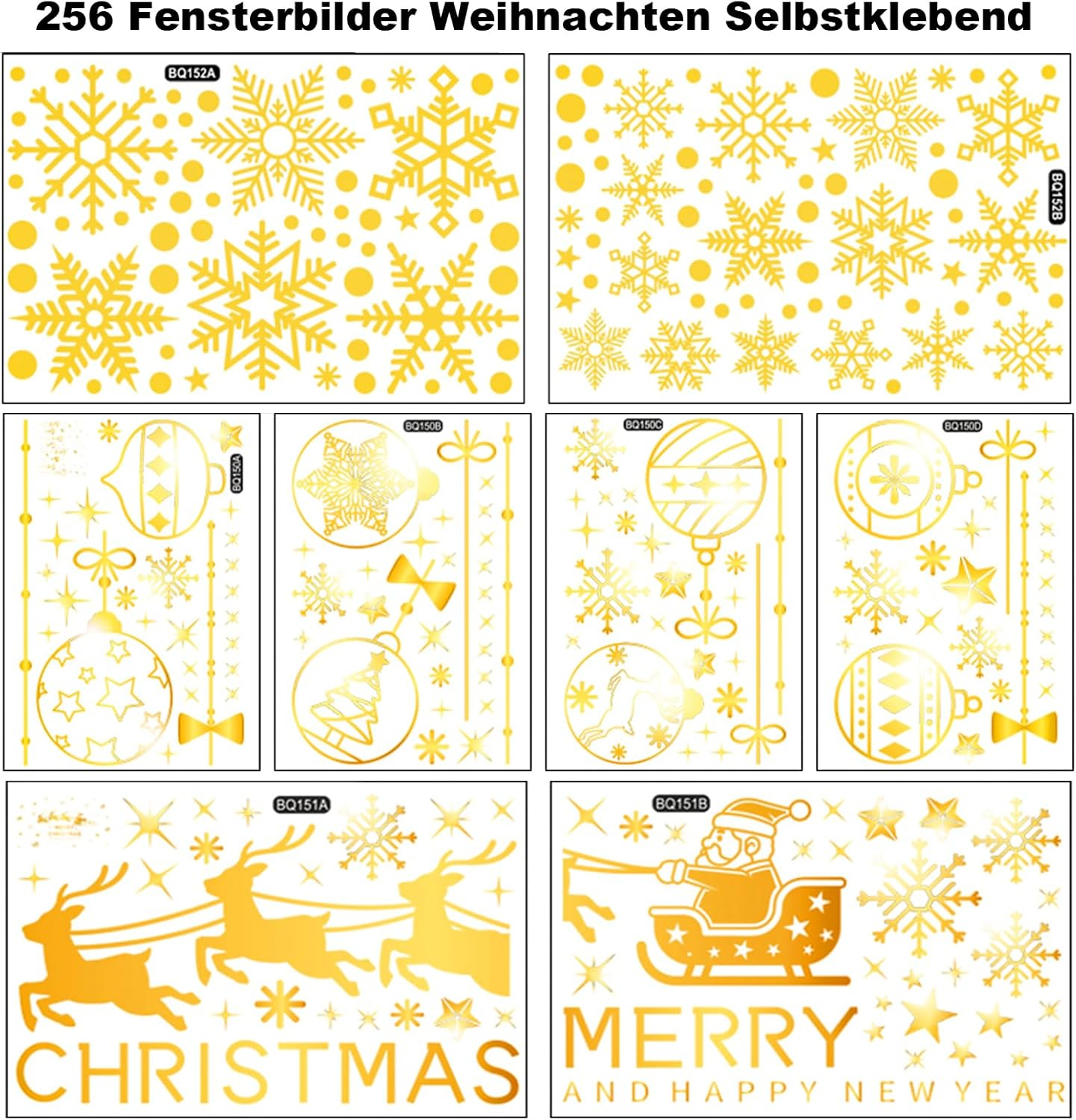 Stickere autoadezive aurii pentru ferestre, model pentru Craciun, set 256 bucati