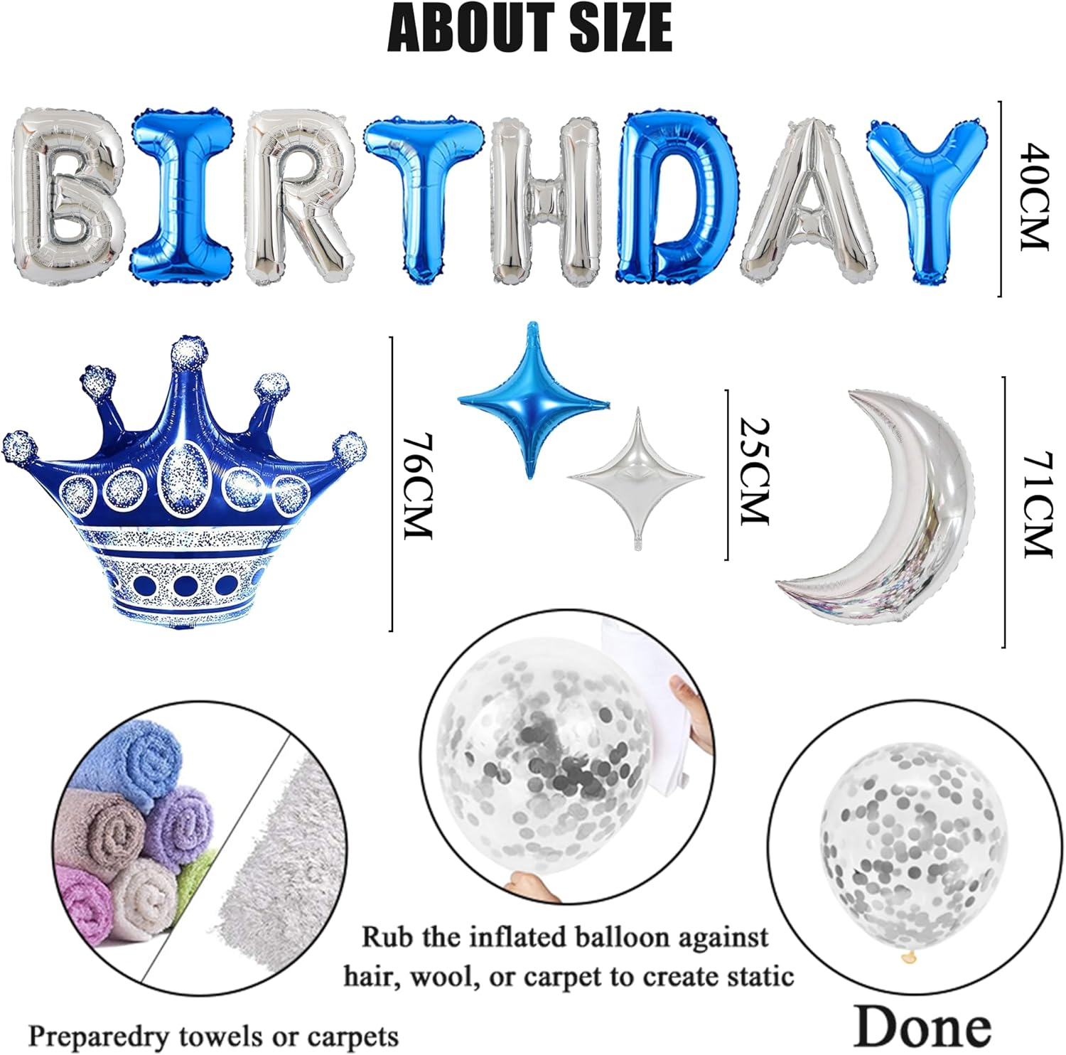 Materiale de înaltă calitate: baloanele de ziua de naștere sunt fabricate din latex de înaltă calitate și folie de aluminiu. Baloanele din latex sunt elastice și ușor de umflat; baloanele de folie sunt colorate și vă ajută să creați o petrecere elegantă de ziua de naștere