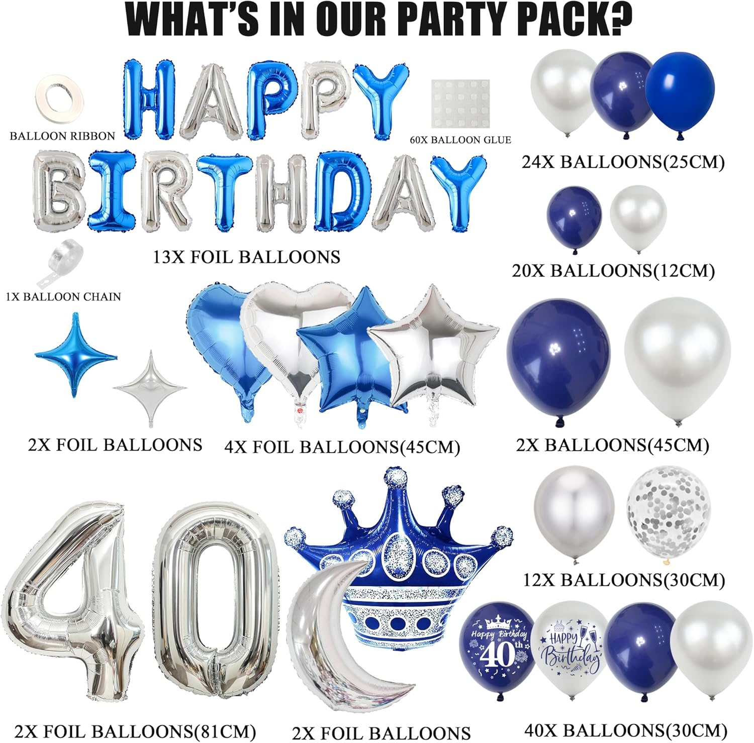 40th Birthday Balloons: veți primi baloane de ziua de naștere la mulți ani, 2 x 32 inch cu numărul de baloane, 8 baloane de folie de formă specială, 98 baloane din latex (2 x 18 inch, 52 x 12 inch, 24 x 10 inch, 20 x 5 inch). Seturi de baloane de ziua de naștere pentru dorințele dvs. de decorare