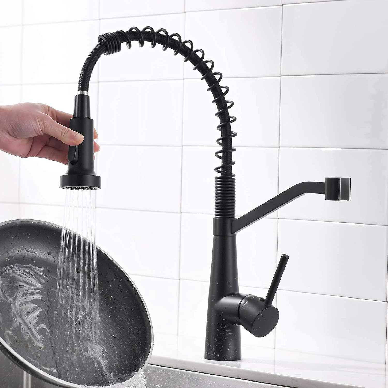 robinetul de bucătărie cu 2 tipuri de jet. Pulverizați și redați, comutați făcând clic pe butonul din gura de scurgere, foarte convenabil de utilizat.