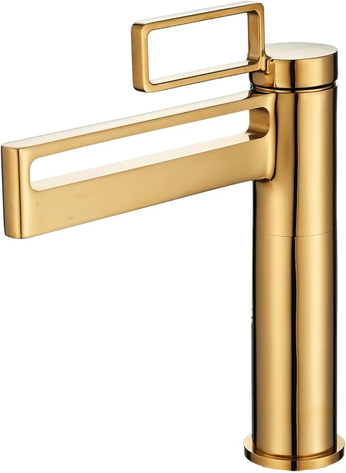 Robinet de chiuveta baie auriu, rotund, inaltime 29.5 cm