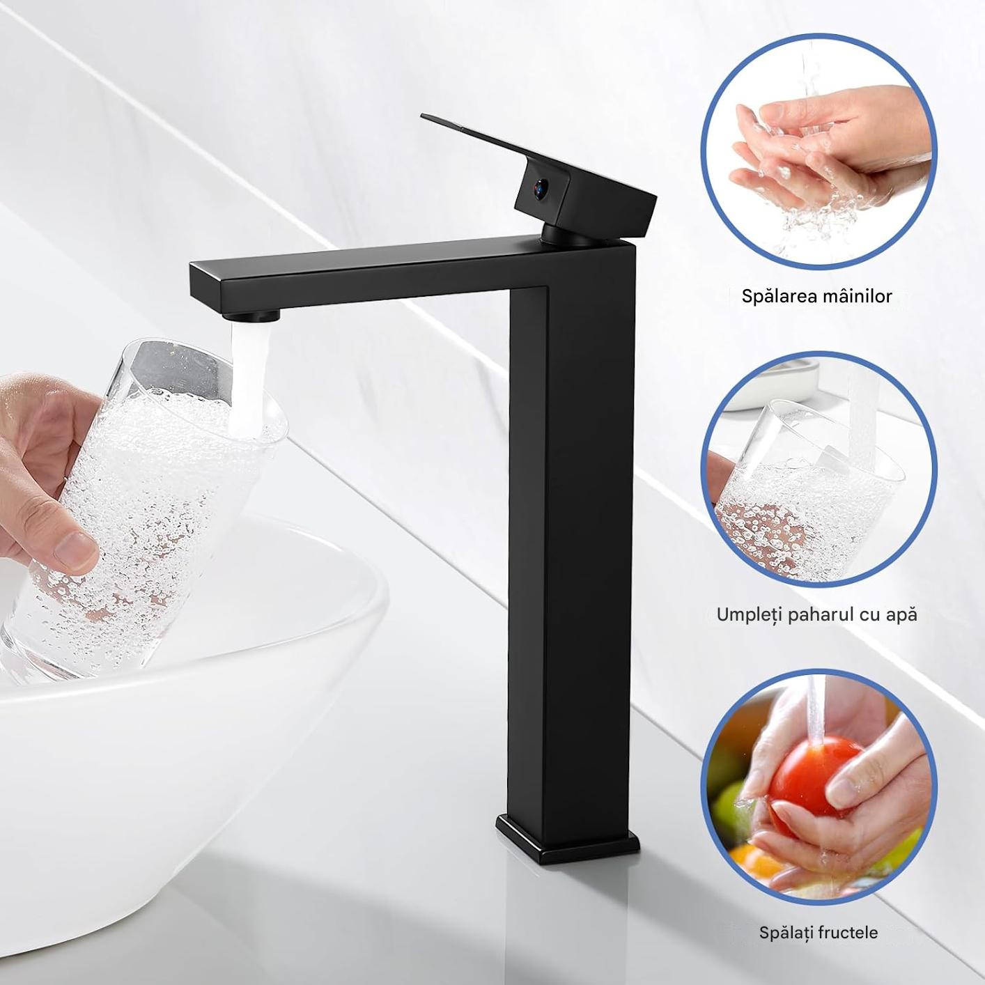 Robinet de chiuveta baie negru patrat, inaltime 295 mm