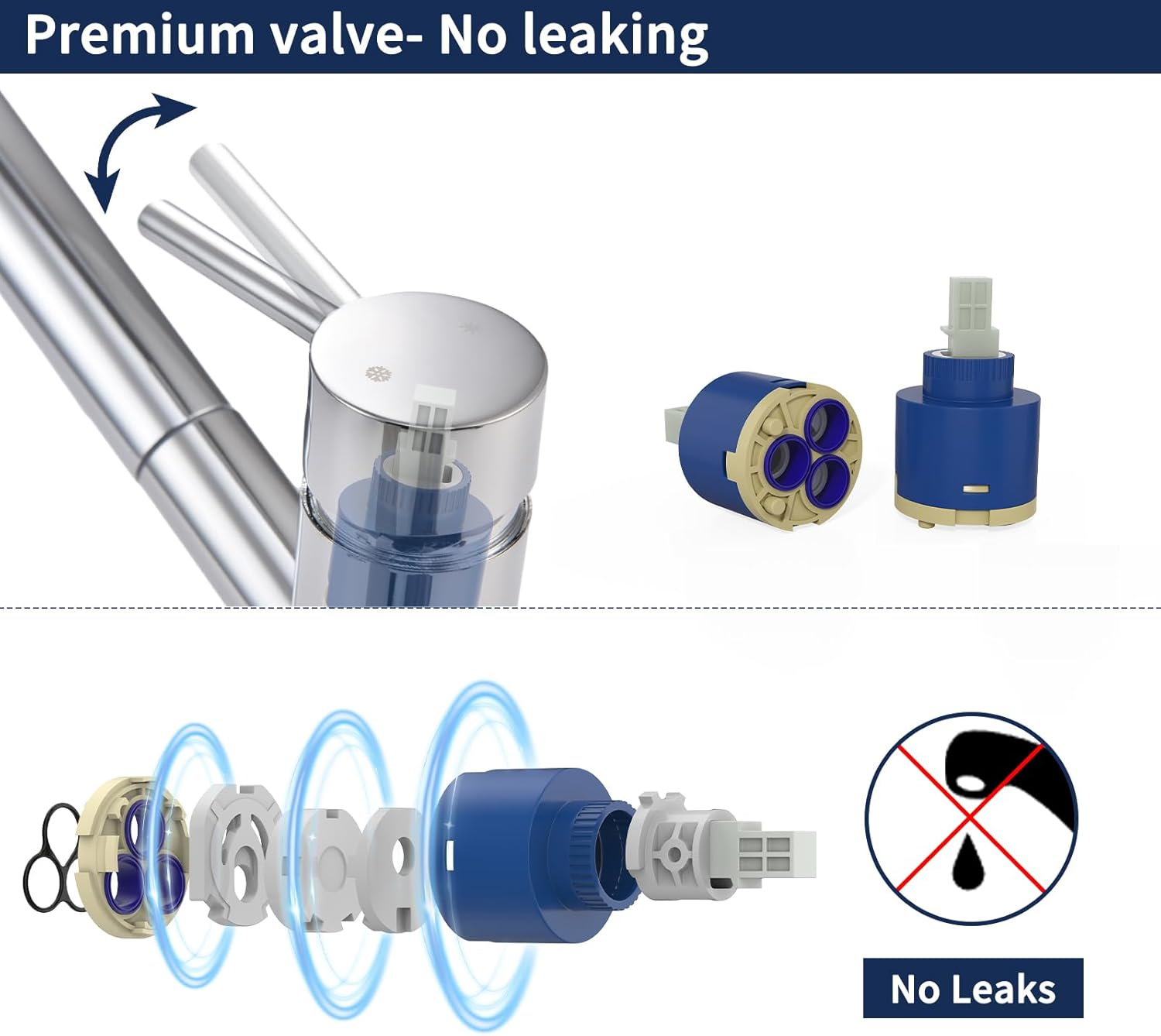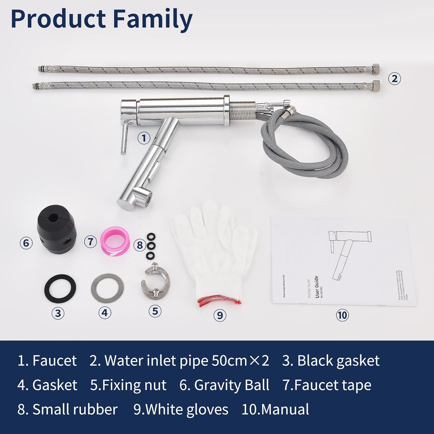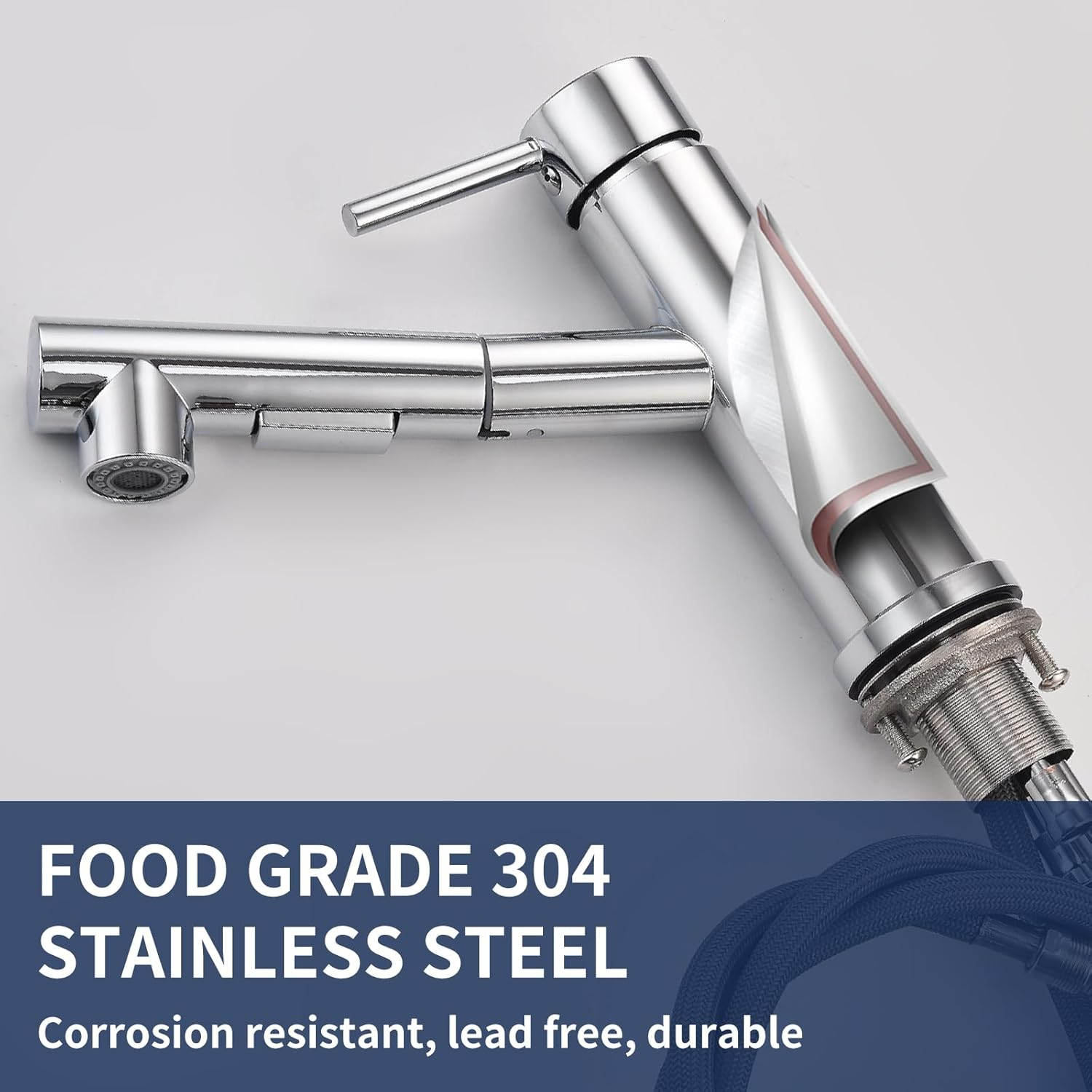 Material de înaltă calitate: robinetul nostru de chiuvetă este fabricat din oțel inoxidabil, este rezistent la coroziune și ecologic, durabil. Nu lasă urme de apă sau amprente digitale și păstrează designul estetic. Echipat cu instrucțiuni de instalare, puteți instala cu ușurință robinetul de bucătărie extensibil la domiciliu fără un instalator.