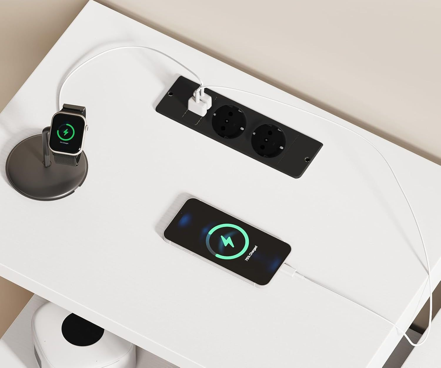 încărcați dispozitive cu stația integrată pe comoda noastra cu sertare de țesătură, creați ordine în cameră și alimentarea electronicii