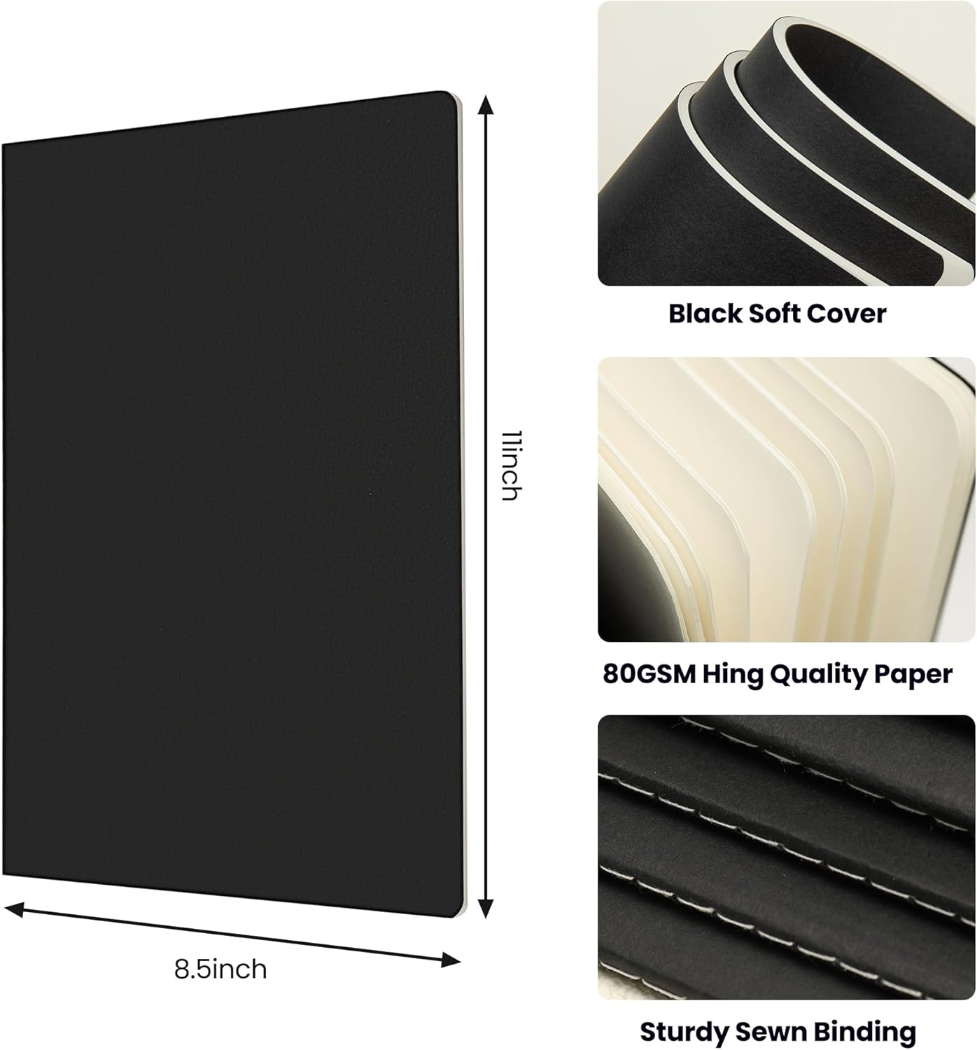 Caiete A4 liniate, 30 foi, 60 pagini, coperte negre, pentru schite, cursuri, pachet 12 bucati