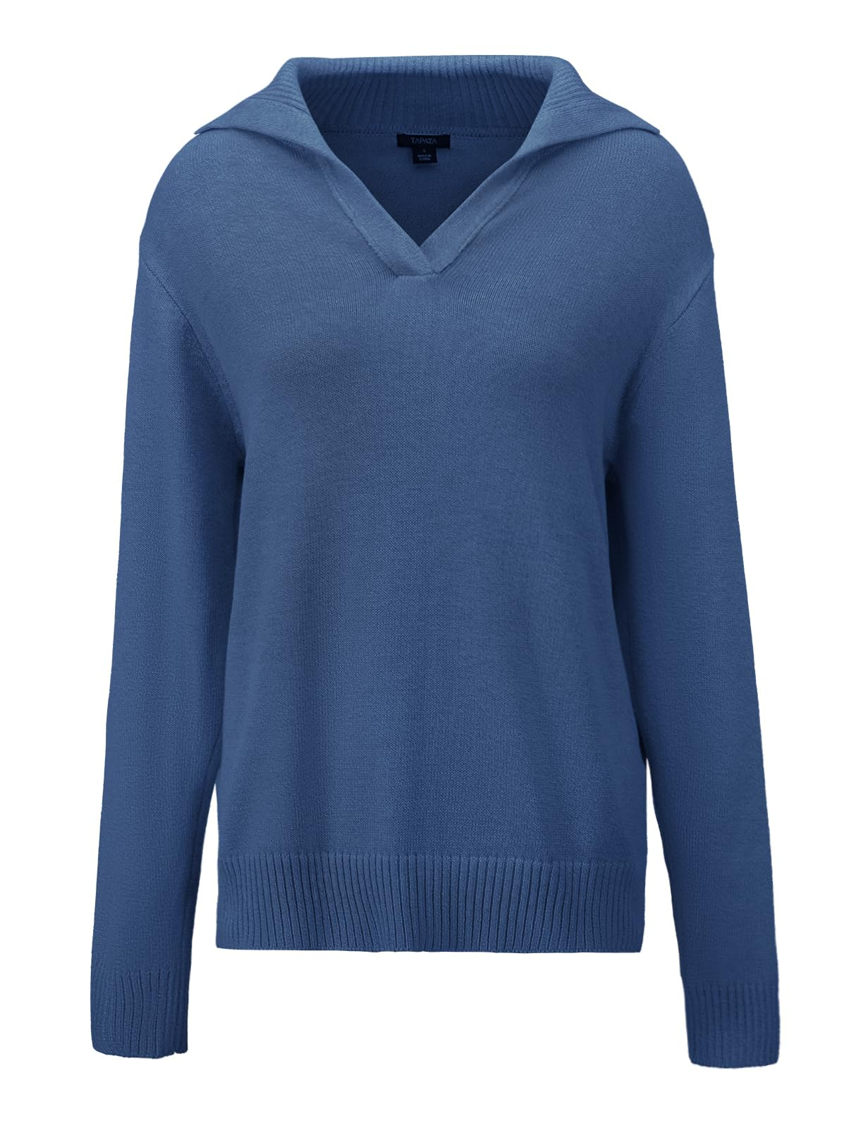 Bluza lejera, pulover tricotat, cu guler in "V" pentru femei, ALBASTRU, marime XXL