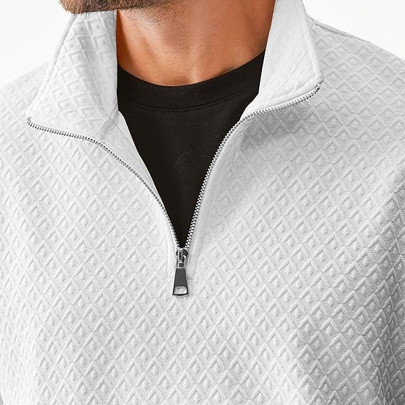 Bluza lejera pentru barbati, cu maneci lungi, pulover Alb cu fermoar 1/4 3XL