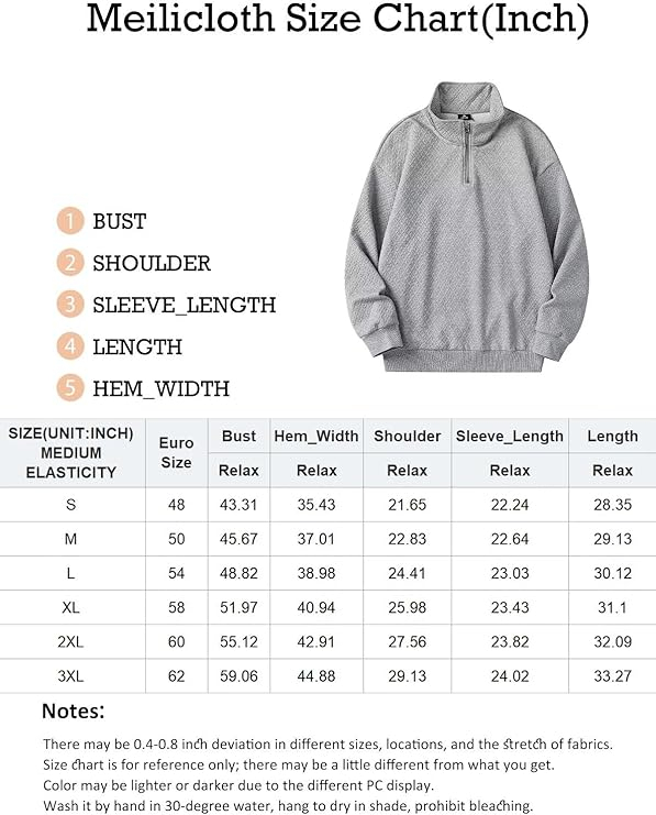 • Dimensiune standard și servicii de înaltă calitate: Înainte de comandă, vă rugăm să comparați cu atenție diagrama de dimensiune Meilicloth, nu graficul de dimensiuni Amazon pentru a vă găsi dimensiunea perfectă Țeavă confortabilă: Leag de transpirație pentru bărbați Meilicloth care adoptă țesătura de înaltă calitate și elastică este fabricată dintr-un amestec de 95% fibre de poliester și 5% elastane și oferă o molică și confort pentru cele mai bune Design unic: aceste tricouri ușoare în aer liber au o jumătate de fermoar cu guler stand-up, țesătură texturată geometrică care oferă o notă de modă, jumătatea cu fermoar și guler polo îi conferă un aspect clasic Meci: acest hanorac de vafe poate fi ușor combinat cu blugi, pantaloni cargo, pantaloni de jogging sau pantaloni de jogging pentru a crea un aspect casual și elegant, purtați-l cu o jachetă sau singur pentru o ținută rafinată
