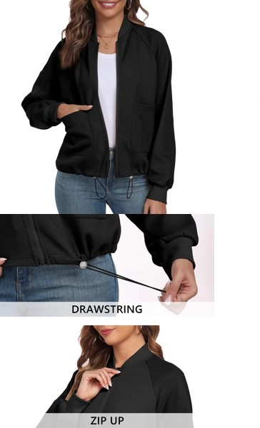 Bluza sport, cu maneca lunga, decolteu in V cu fermoar, neagra M