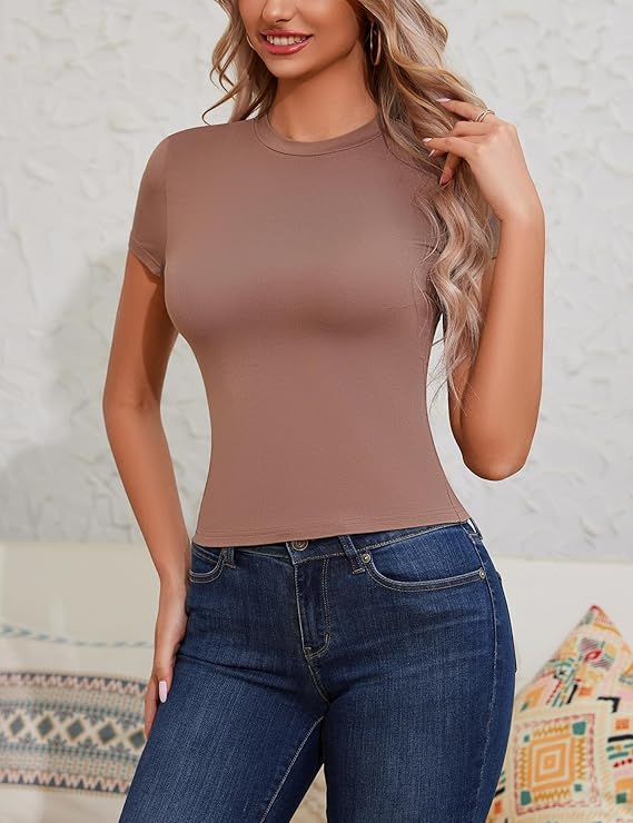• Topurile cu mâneci scurte pentru femei sunt fabricate din țesături elastice de înaltă calitate pentru a asigura luminozitatea, respirabilitatea, catifelarea și fibrele viscoze prietenoase cu pielea de 92% și 8% spandex. Pentru recomandări de dimensiuni, consultați diagrama de dimensiune a ultimei imagini. (6-8=S, 10-12=M, 14-16=L, 18-20=XL)