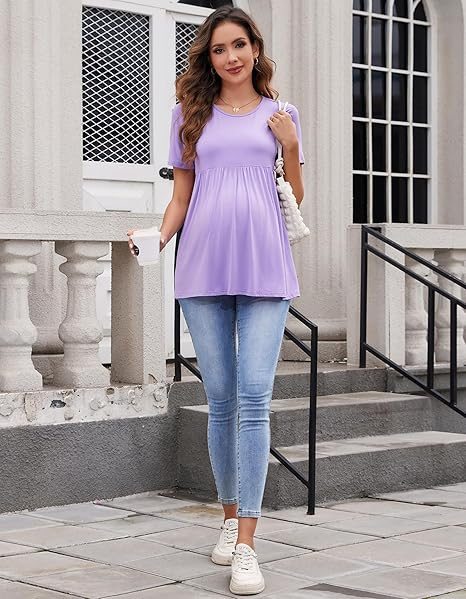 Bluza lejera cu maneca scurta pentru femei insarcinate, mov XL